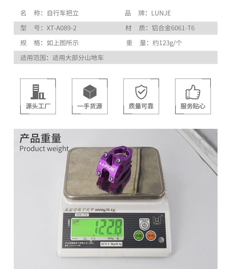 Potencia de bicicleta LUNJE potencia de bicicleta de montaña descenso aleación de aluminio hueca poste de manillar 25.4mm accesorios de bicicleta