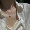 Collar con colgante de perla de cristal Shijia brillante de plata esterlina S925, cadena de clavícula de temperamento francés de lujo ligero de alta calidad