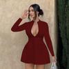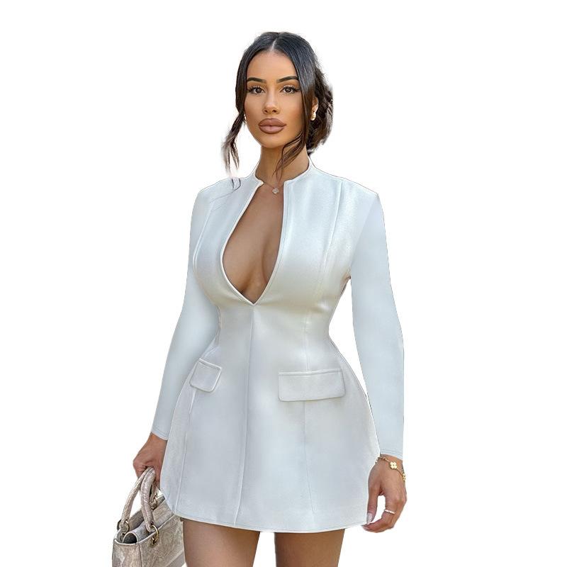 | YY24124 Vestido sexy de estilo europeo y americano con escote en V y bolsillos falsos, novedad de verano 2024, falda corta de cintura delgada para chica sexy |