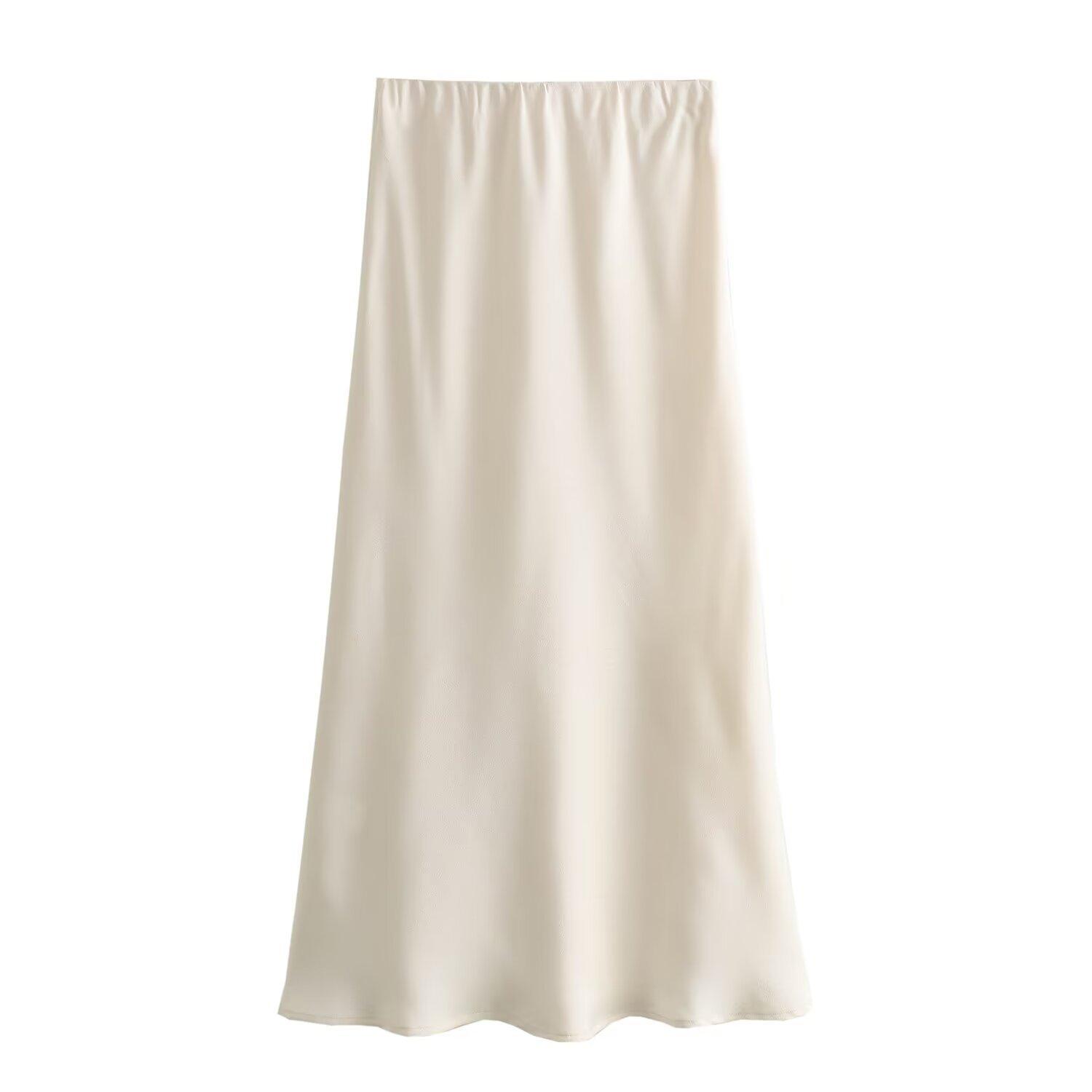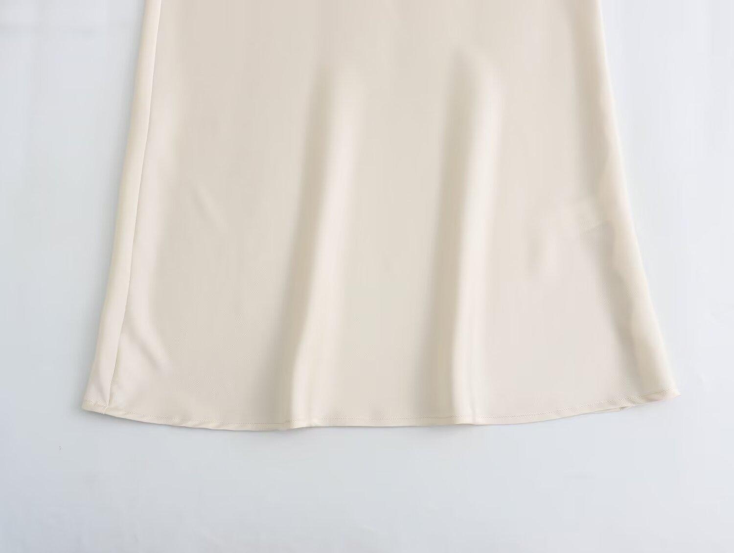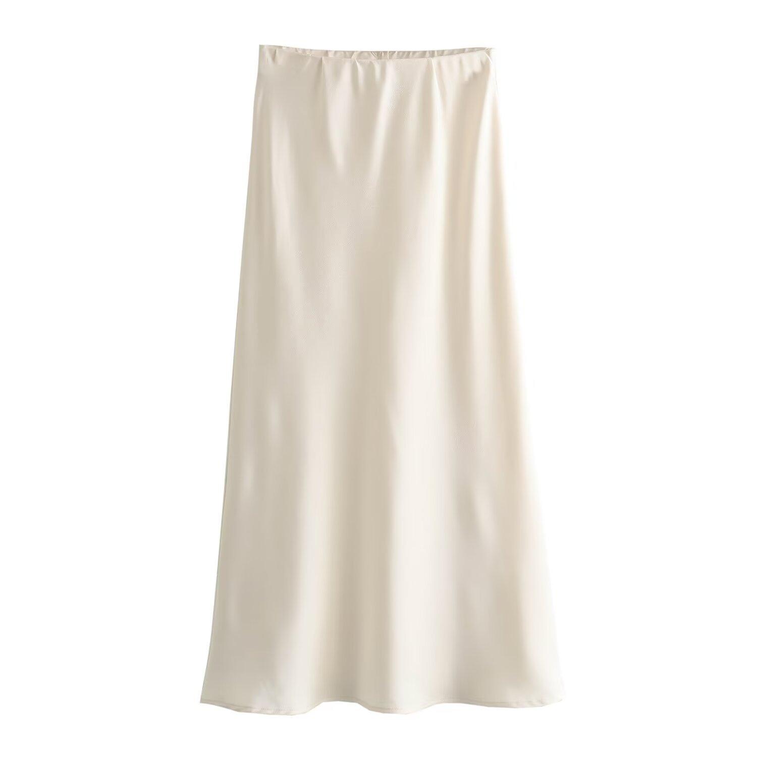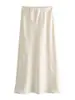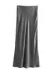 Vestido midi de seda satinada con cintura alta y textura de satén para mujer, sencillo y combinable, novedad de verano de 2024