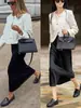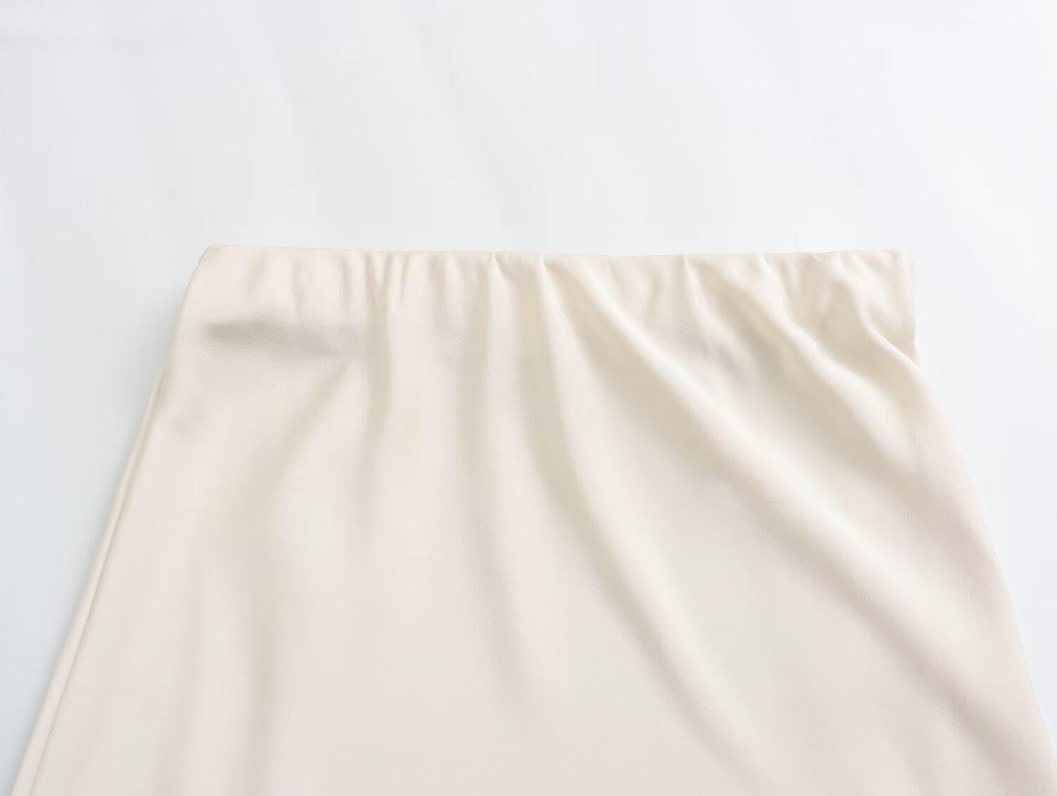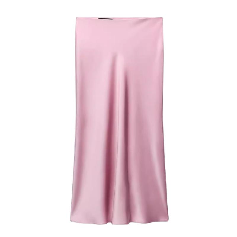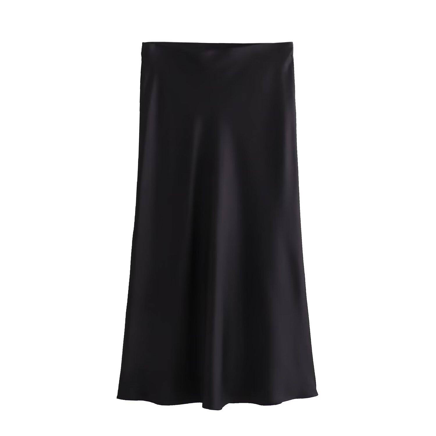 Vestido midi de seda satinada con cintura alta y textura de satén para mujer, sencillo y combinable, novedad de verano de 2024