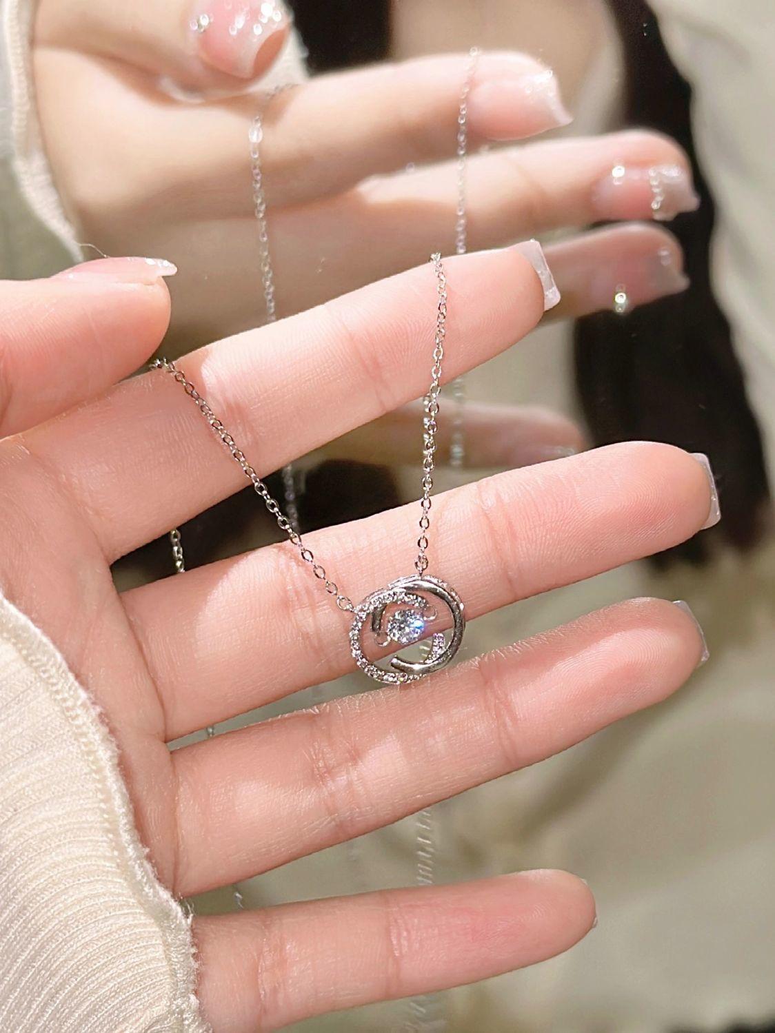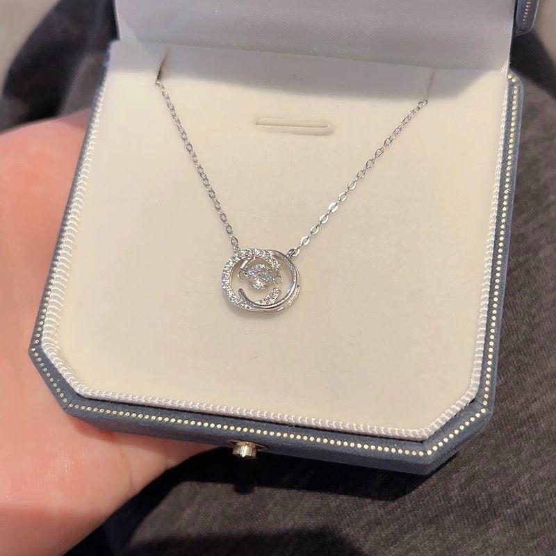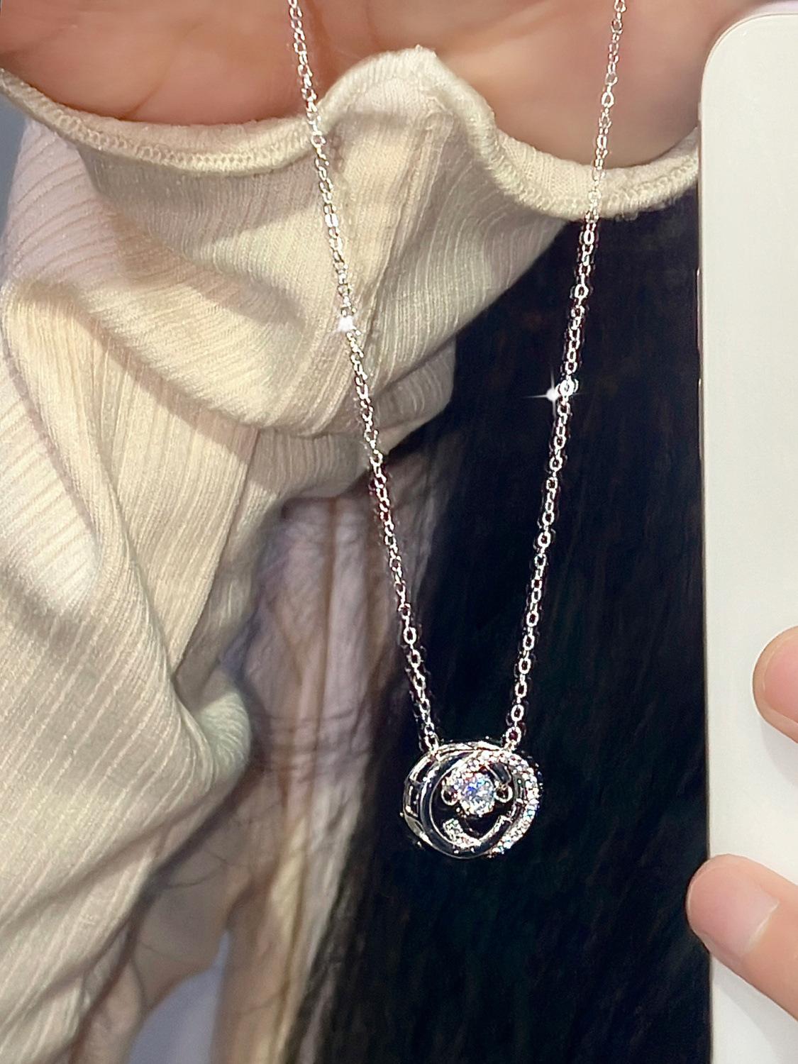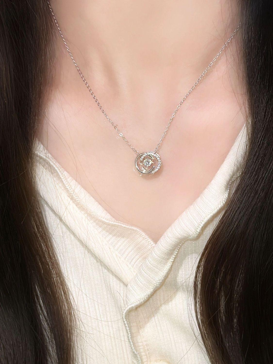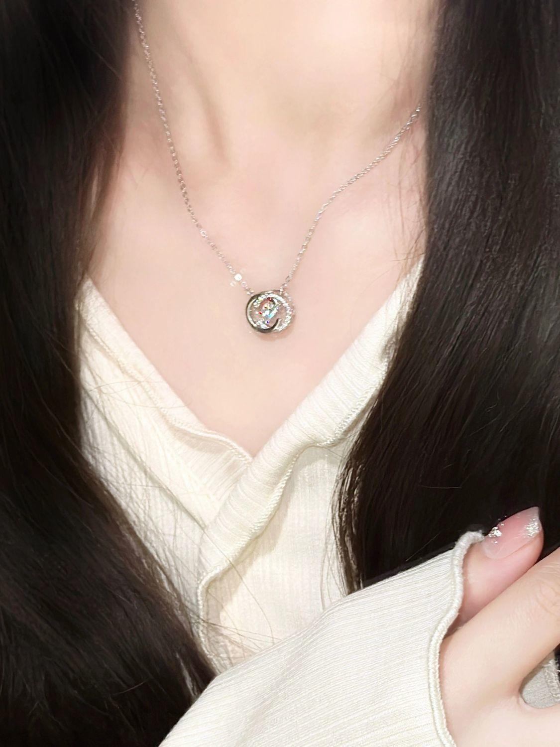 Collar de plata con forma de corazón palpitante de doble C para mujer, diseño de nicho de alta gama, cadena de clavícula que combina con todo, regalo de cumpleaños para novia.