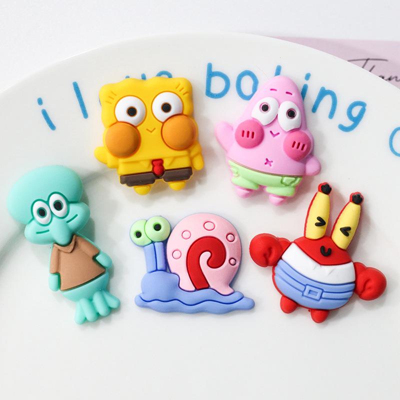 Accesorios de goma suave Paixing Bob Esponja joyería diy pegamento crema funda para teléfono móvil agujero pantuflas hebilla parche pinza para el cabello