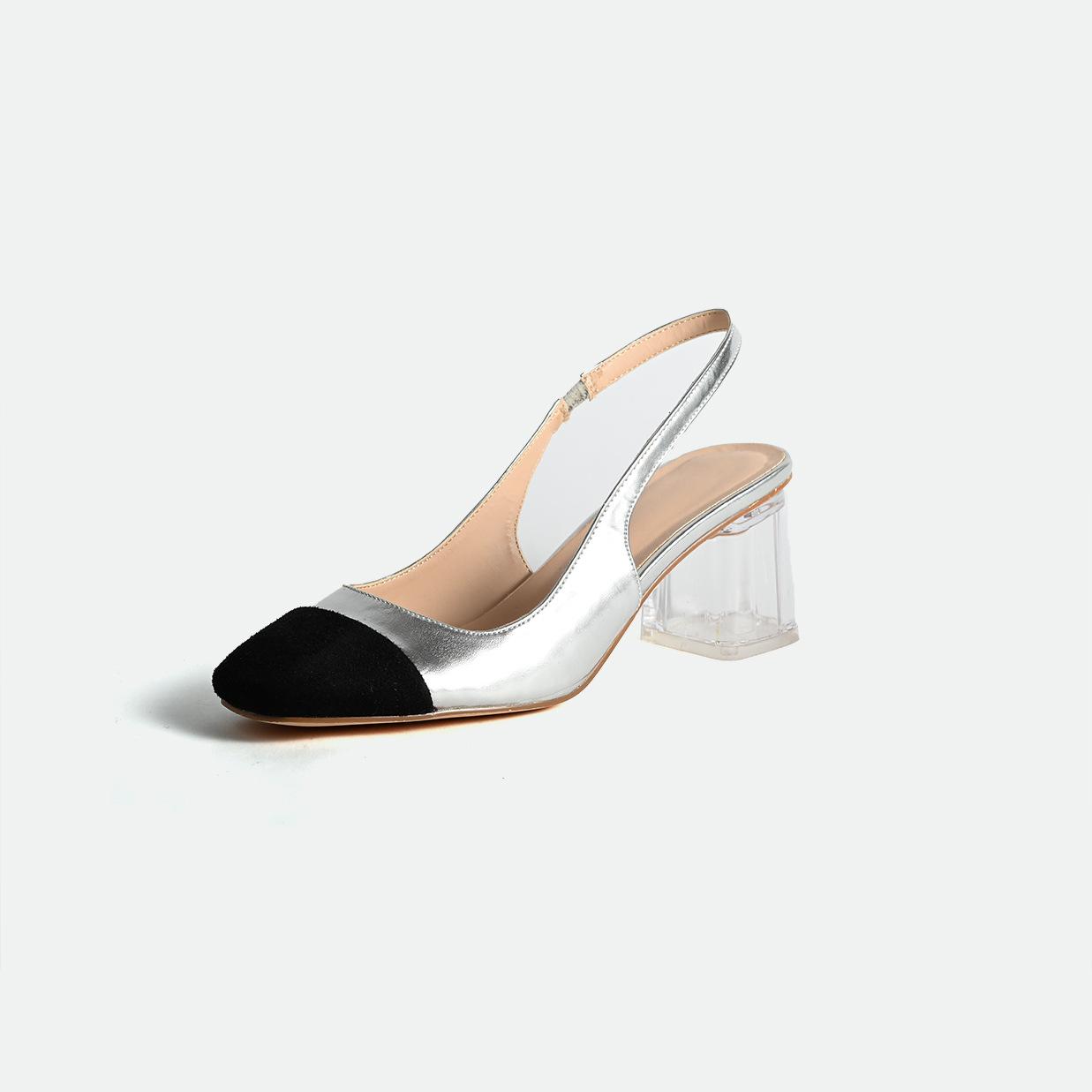 Nuevas Sandalias Baotou Transfronterizas para Mujer Verano 2024 Nueva Moda Estilo Coreano Combinación de Colores Hebilla de una Palabra Zapatos de Tacón Alto para Mujer