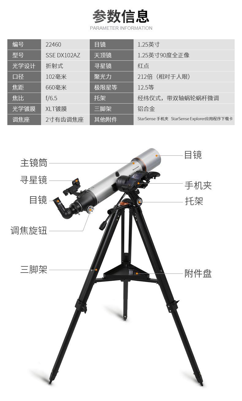 Telescopio astronómico Celestron SSE DX102AZ profesional para observación de estrellas de alta potencia, gafas para observación del cielo HD demasiado espacio profundo