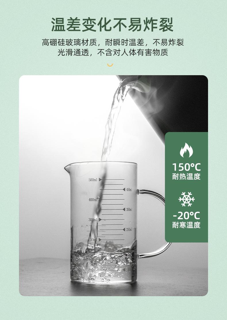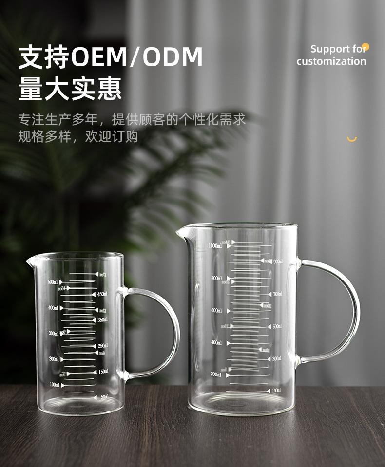 Taza Medidora Personalizada al Por Mayor con Asa, Taza de Vidrio para Leche, Taza de Vidrio Transparente Aislada para el Hogar, Vaso de Cerveza con Escala, Resistente a Altas Temperaturas