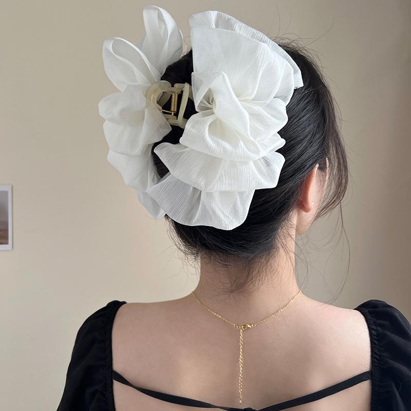 Pinza para el pelo con lazo de gasa de doble cara para mujer, pinza para la nuca con diseño de tiburón grande, elegante horquilla para el pelo