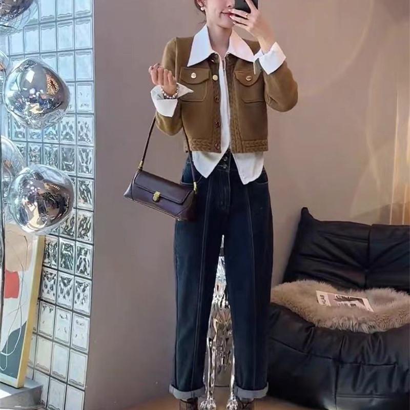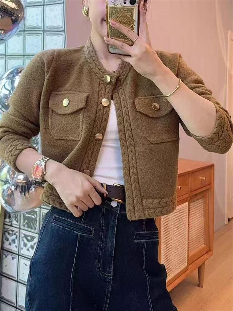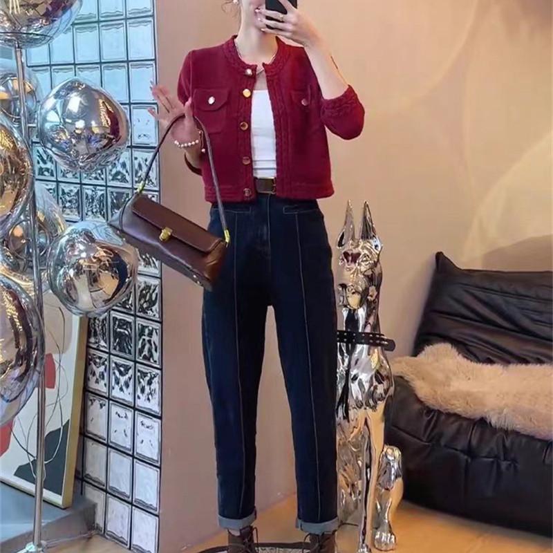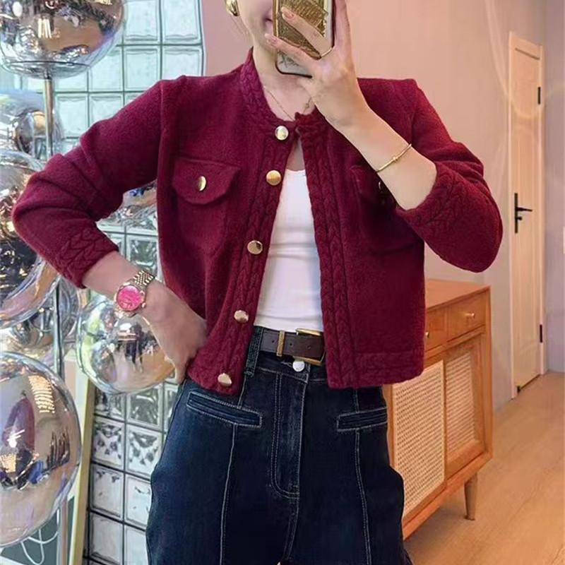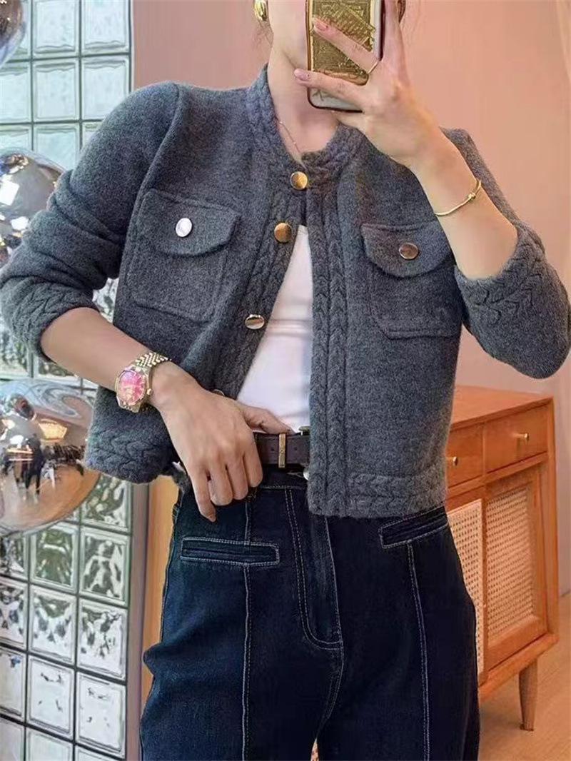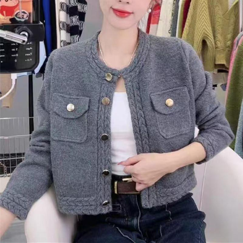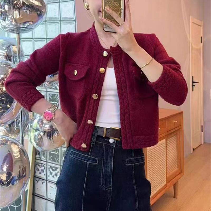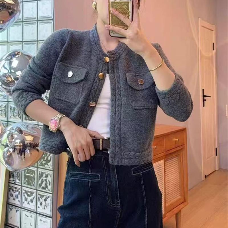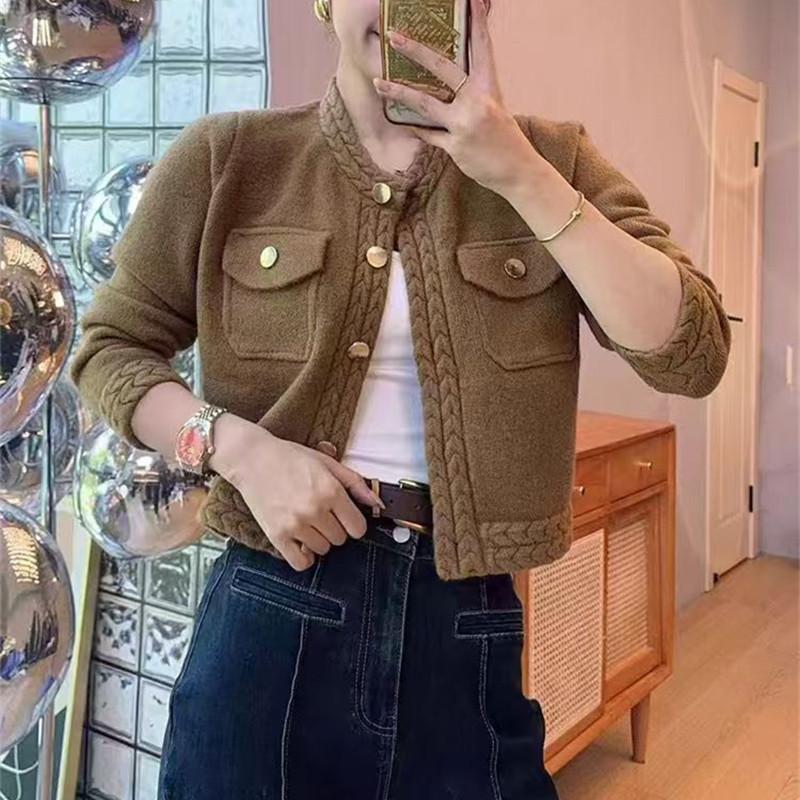 Cárdigan Suéter Vintage Estilo Chanel de Alta Gama Exquisito para Mujer, Nuevo Otoño Versátil Elegante Ajustado Abrigo Corto