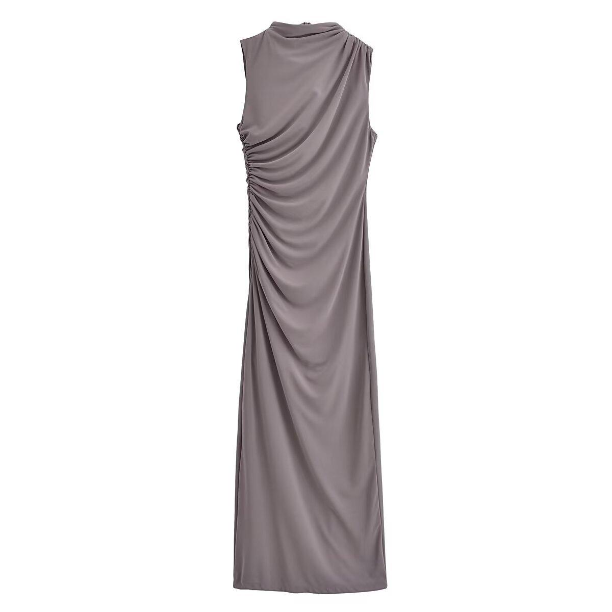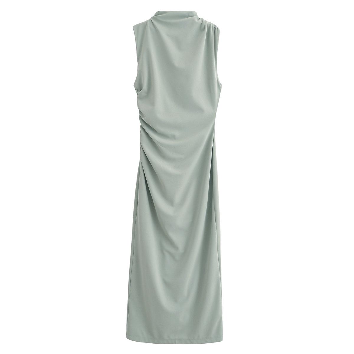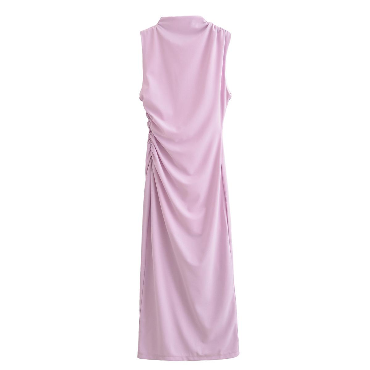 2024 Europeu e Americano Francês Verão Novo Doce Moda Elegante All-match Vestido Midi Plissado