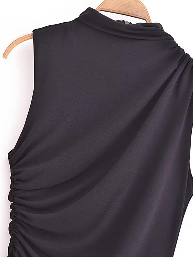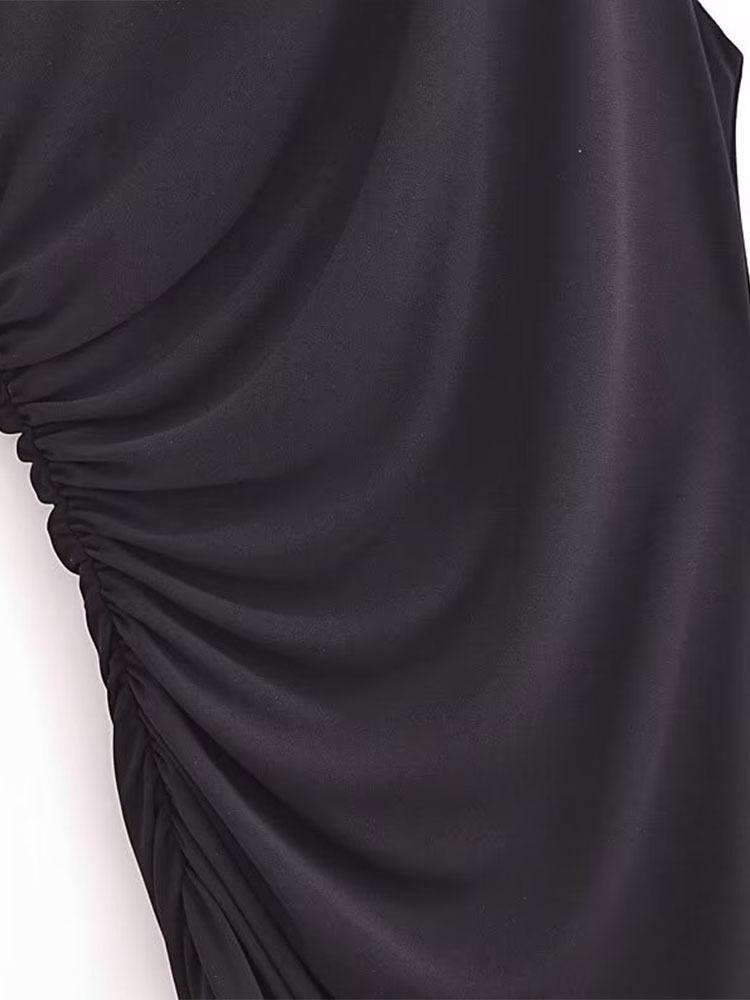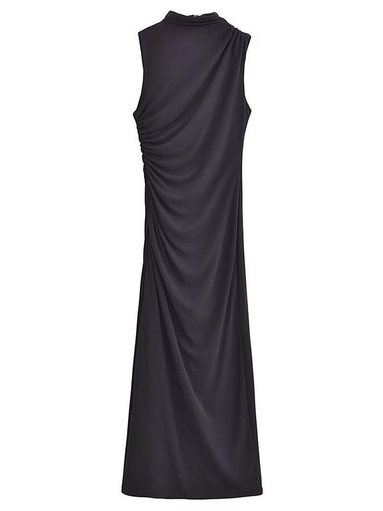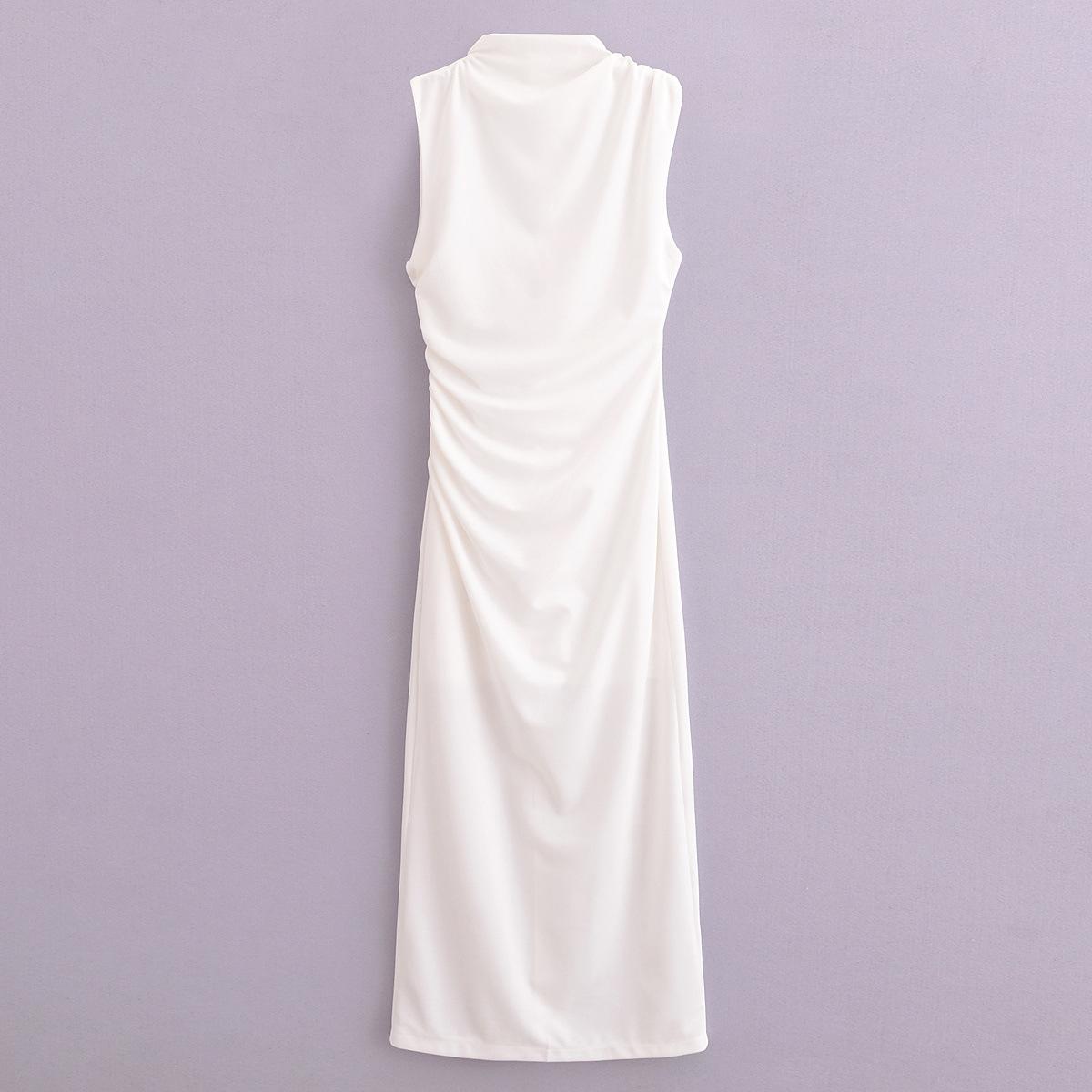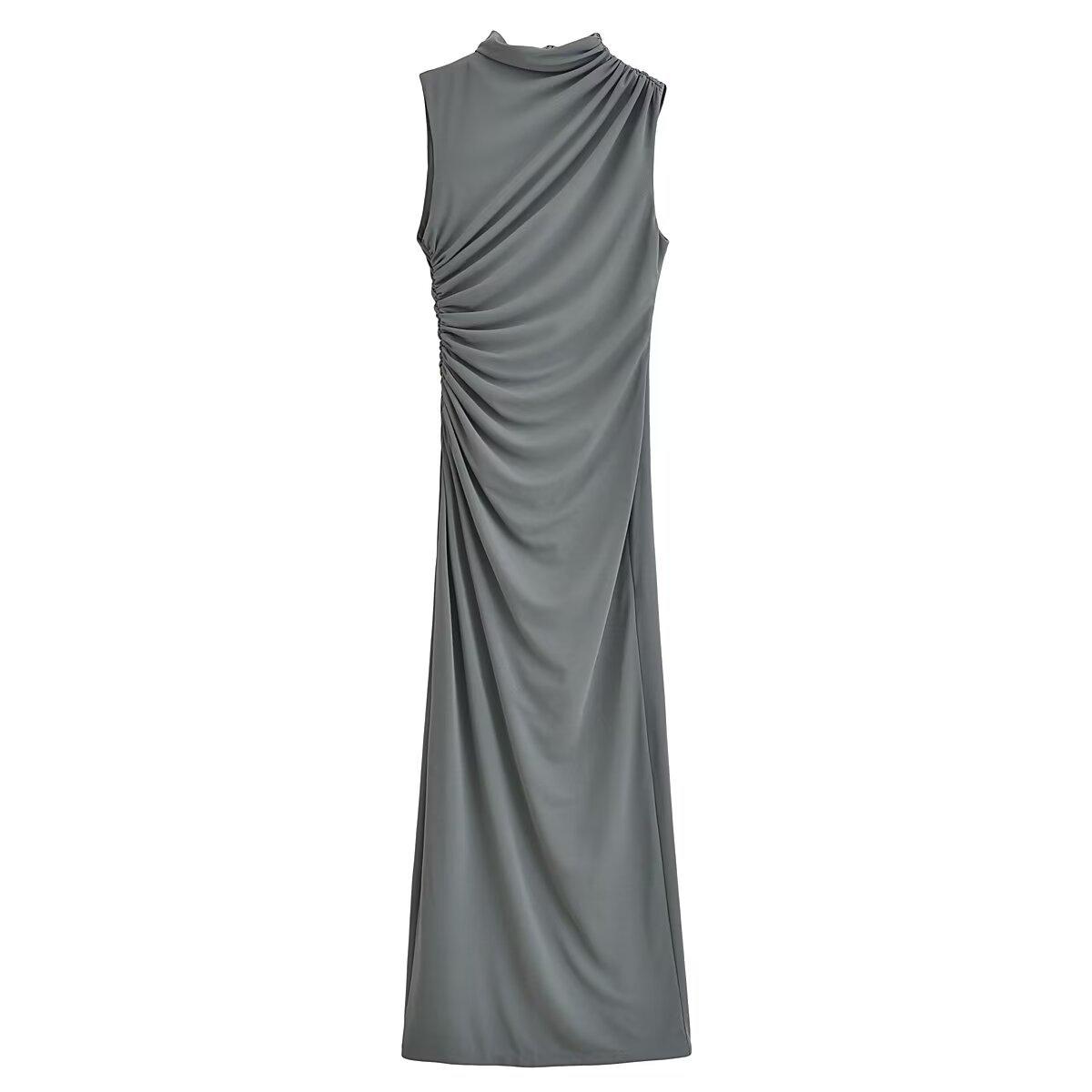 2024 Europeu e Americano Francês Verão Novo Doce Moda Elegante All-match Vestido Midi Plissado