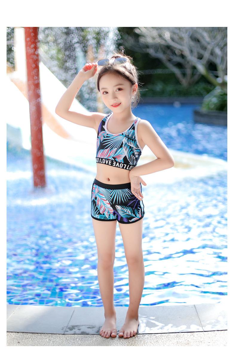 Traje de baño para niñas, niños grandes, bebé, dividido, conjunto de tres piezas, protector solar, niña pequeña, estudiante, lindo traje de baño de princesa