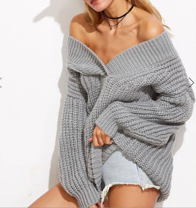 Suéter de punto de color sólido suave y grueso con cuello en V nuevo de comercio exterior europeo y americano para mujer de primavera, suéter holgado y cálido.