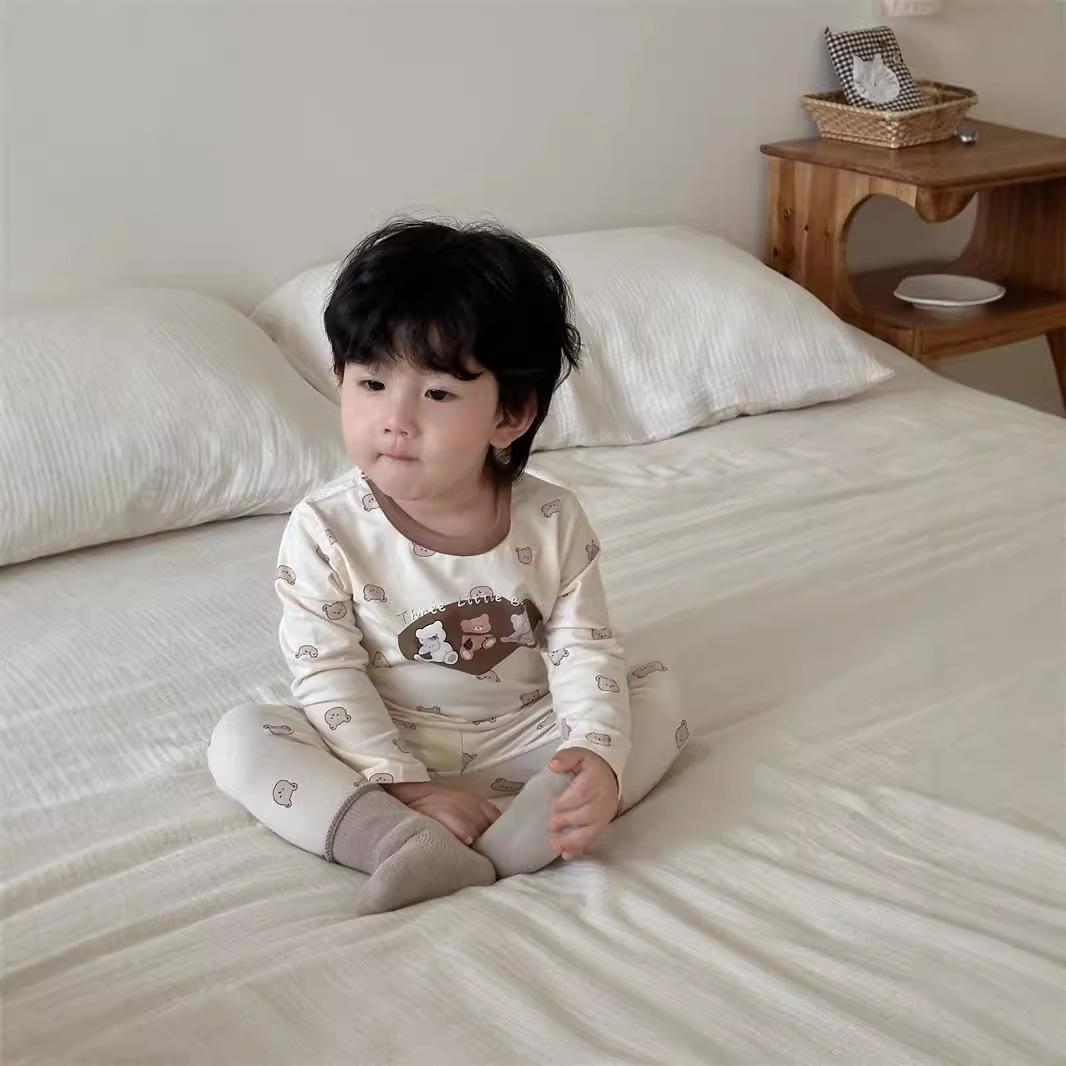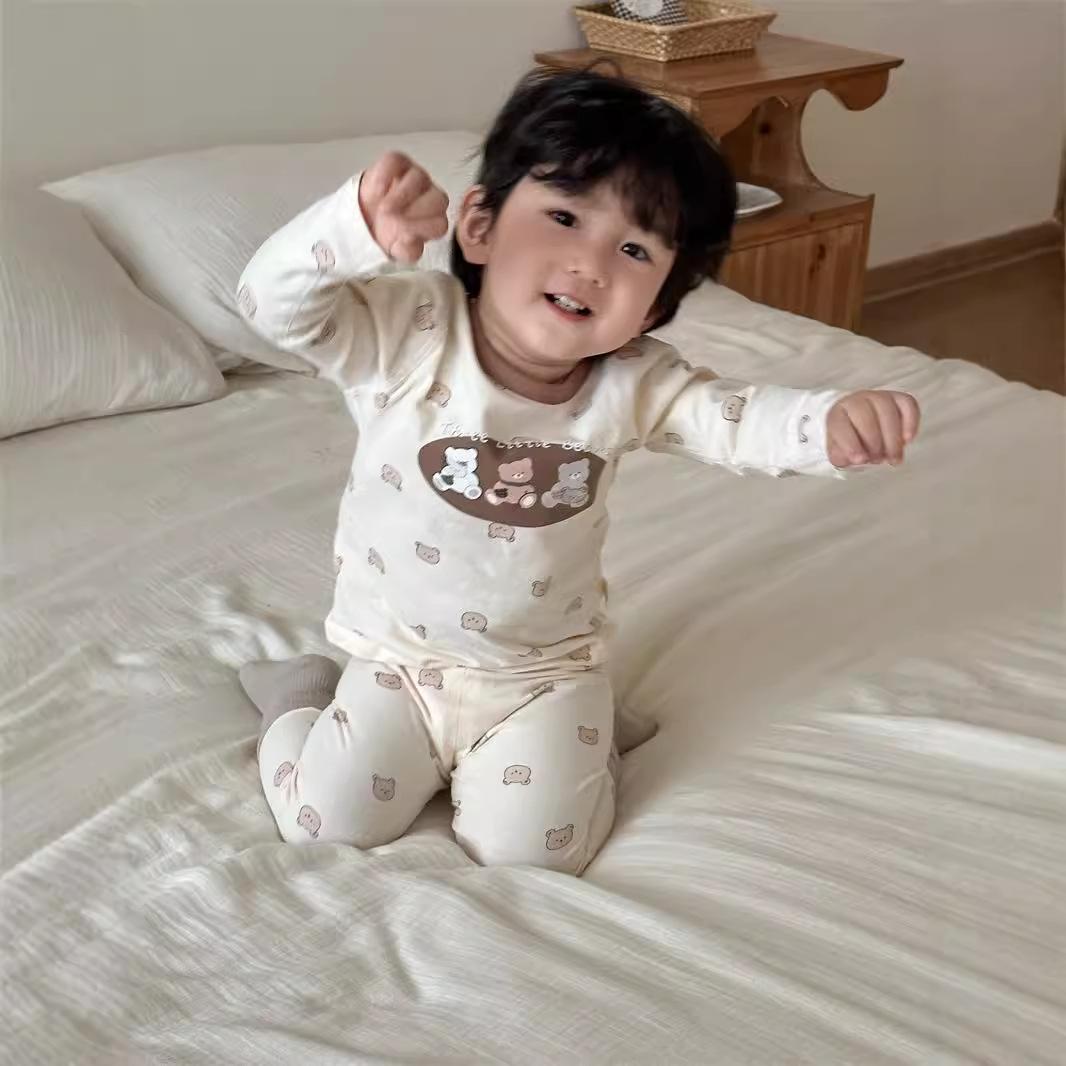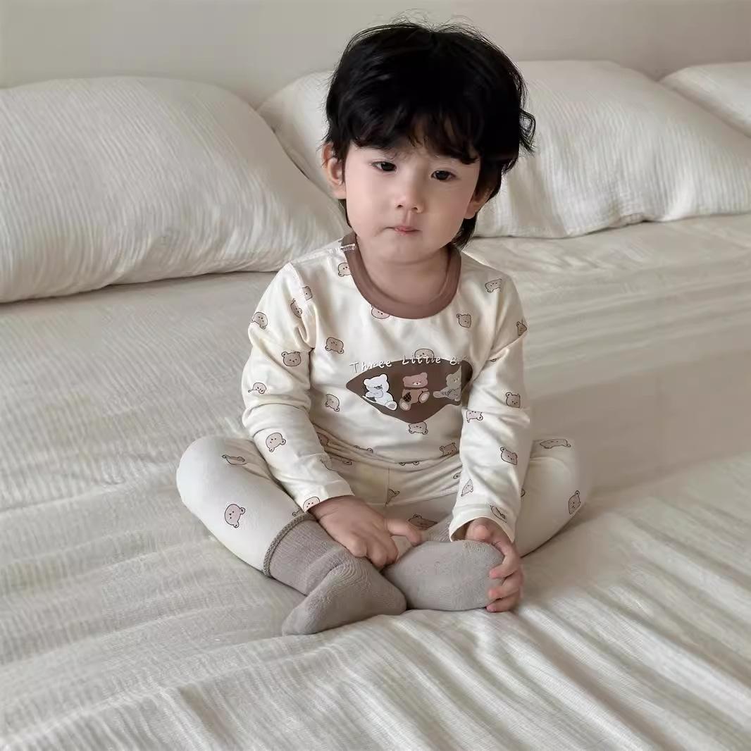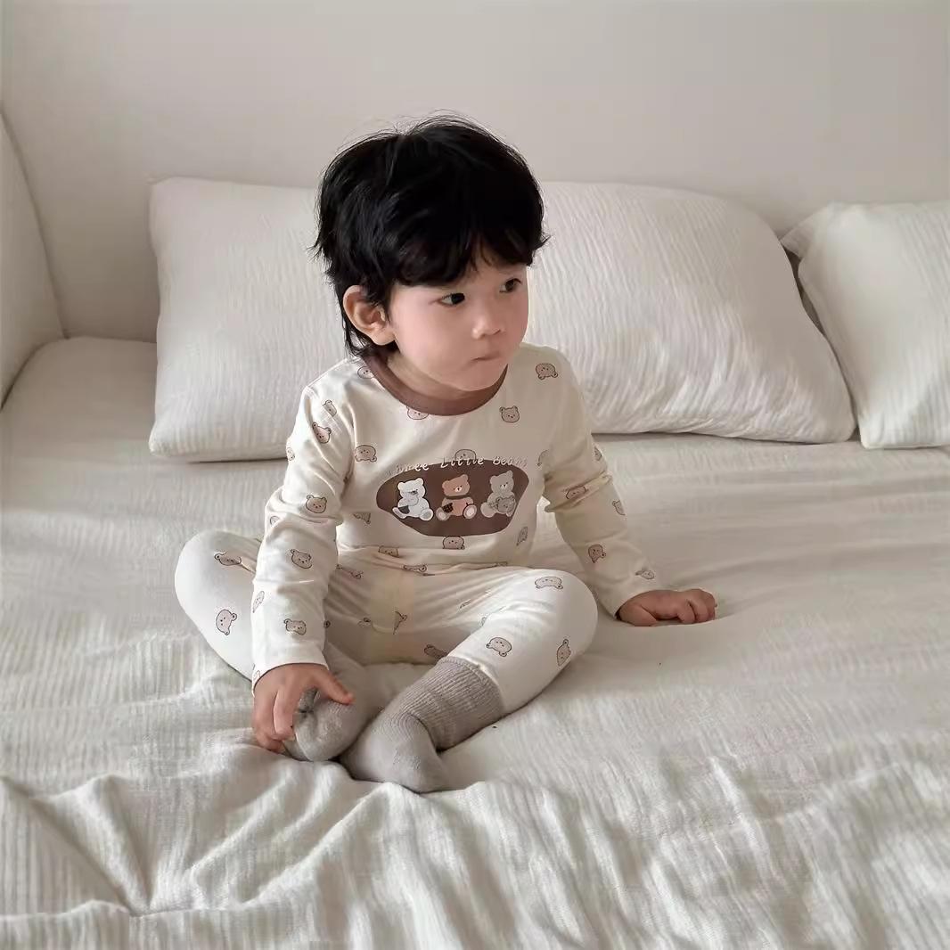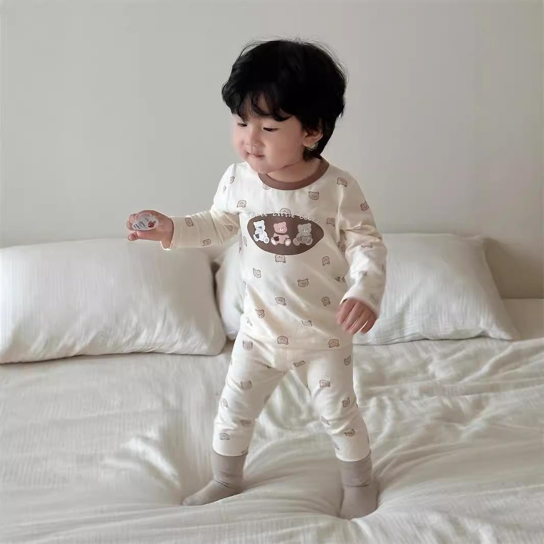 Pijamas para niños Otoño Traje para el hogar 2024 Otoño Estilo coreano Ropa para niños Niños Bebé Dibujos animados Conjunto de ropa para el hogar