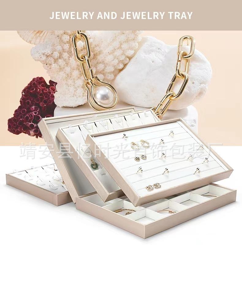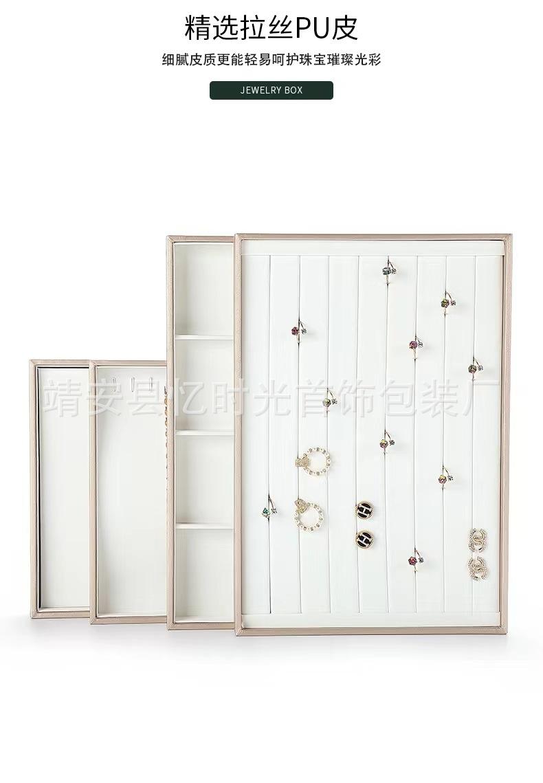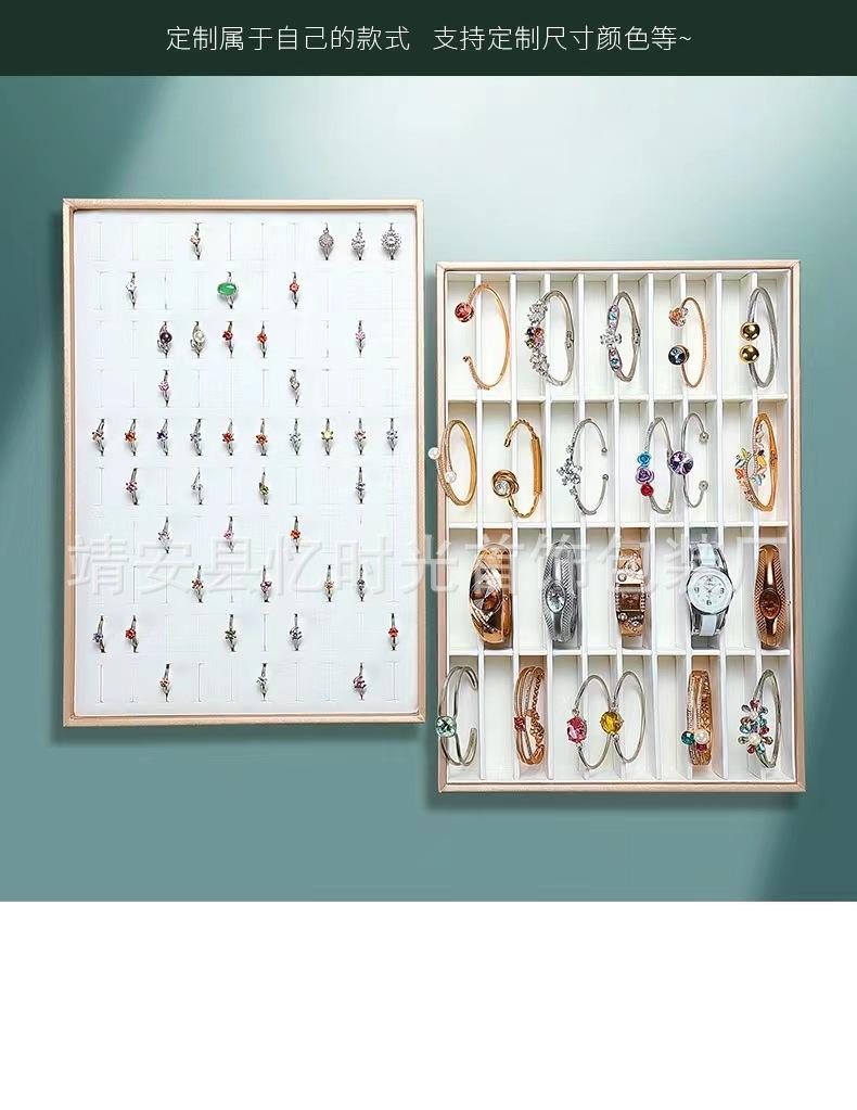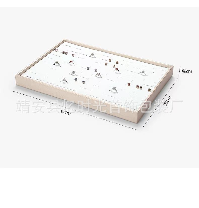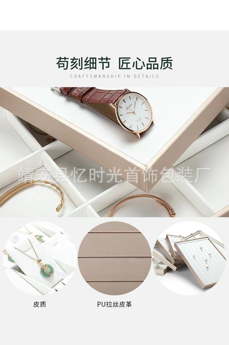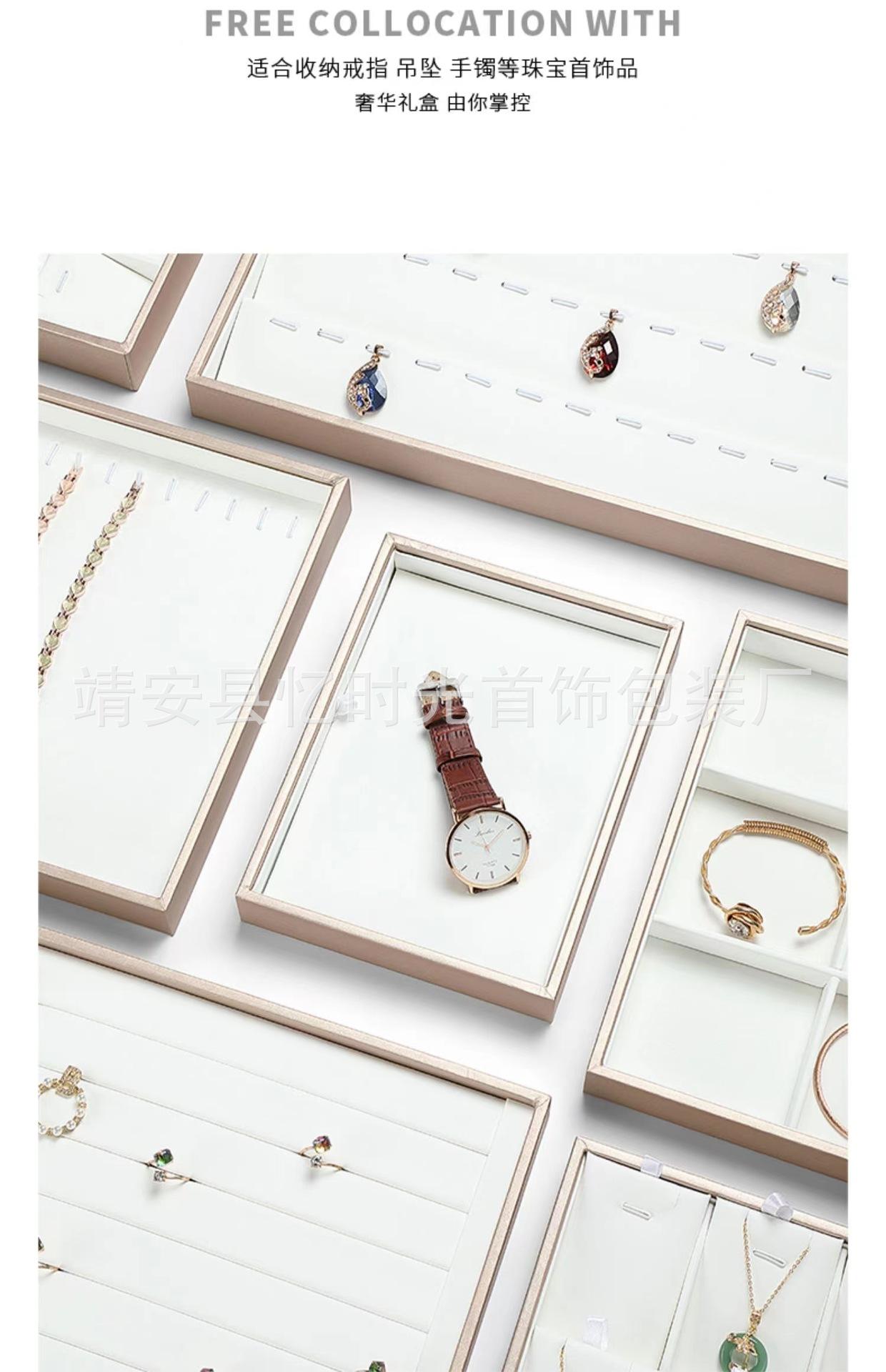Bandeja de exhibición de joyas de cuero cepillado con acabado dorado, ideal para guardar anillos, collares y pulseras.