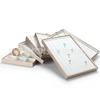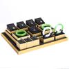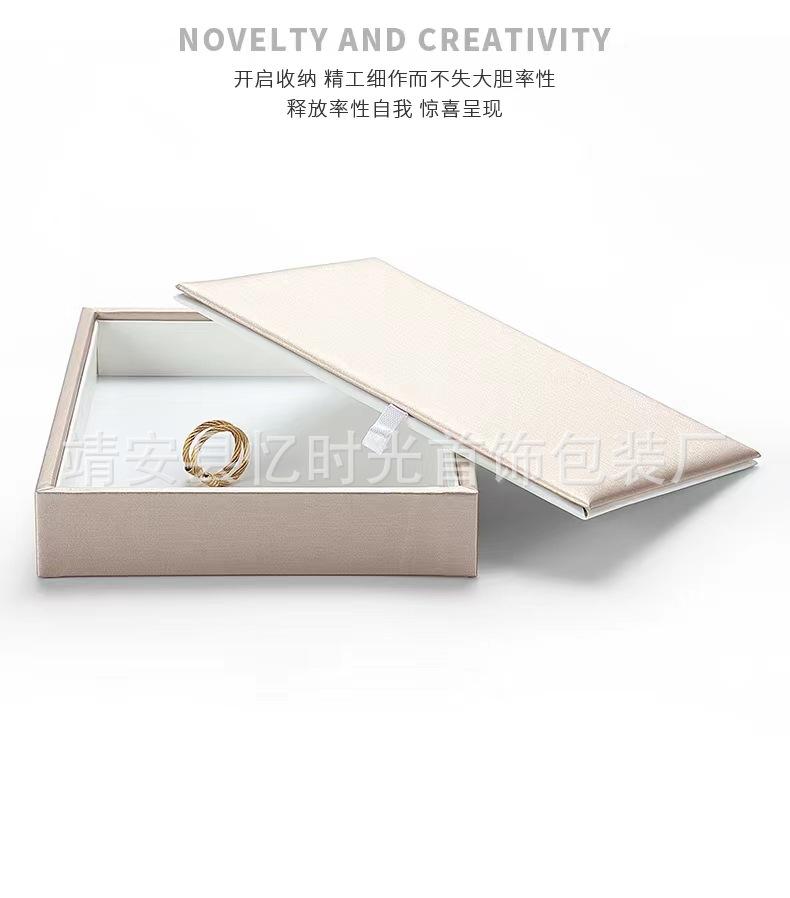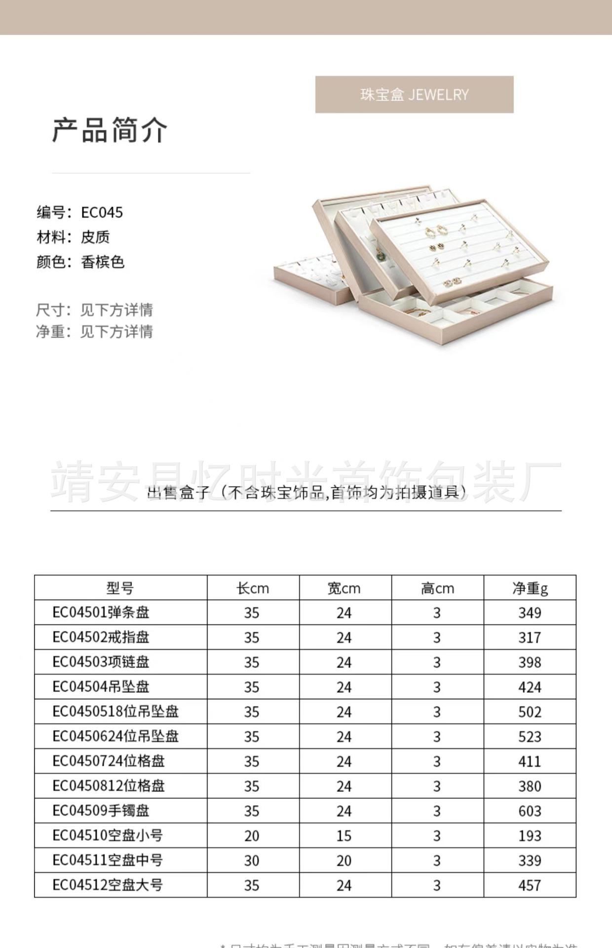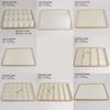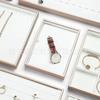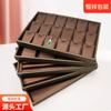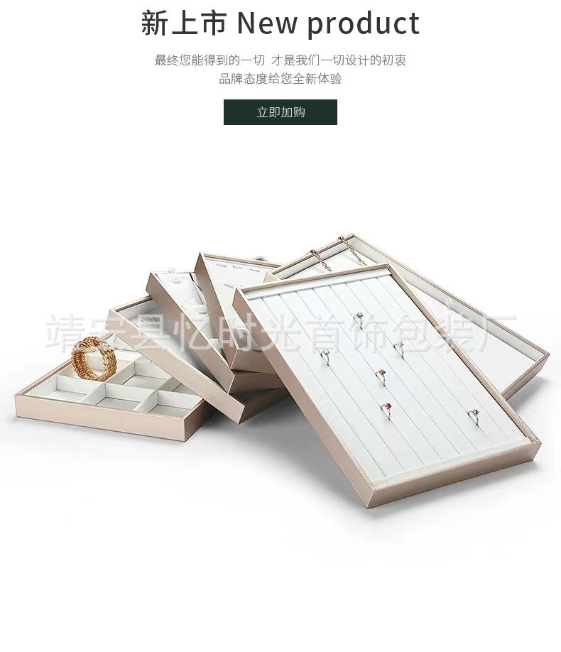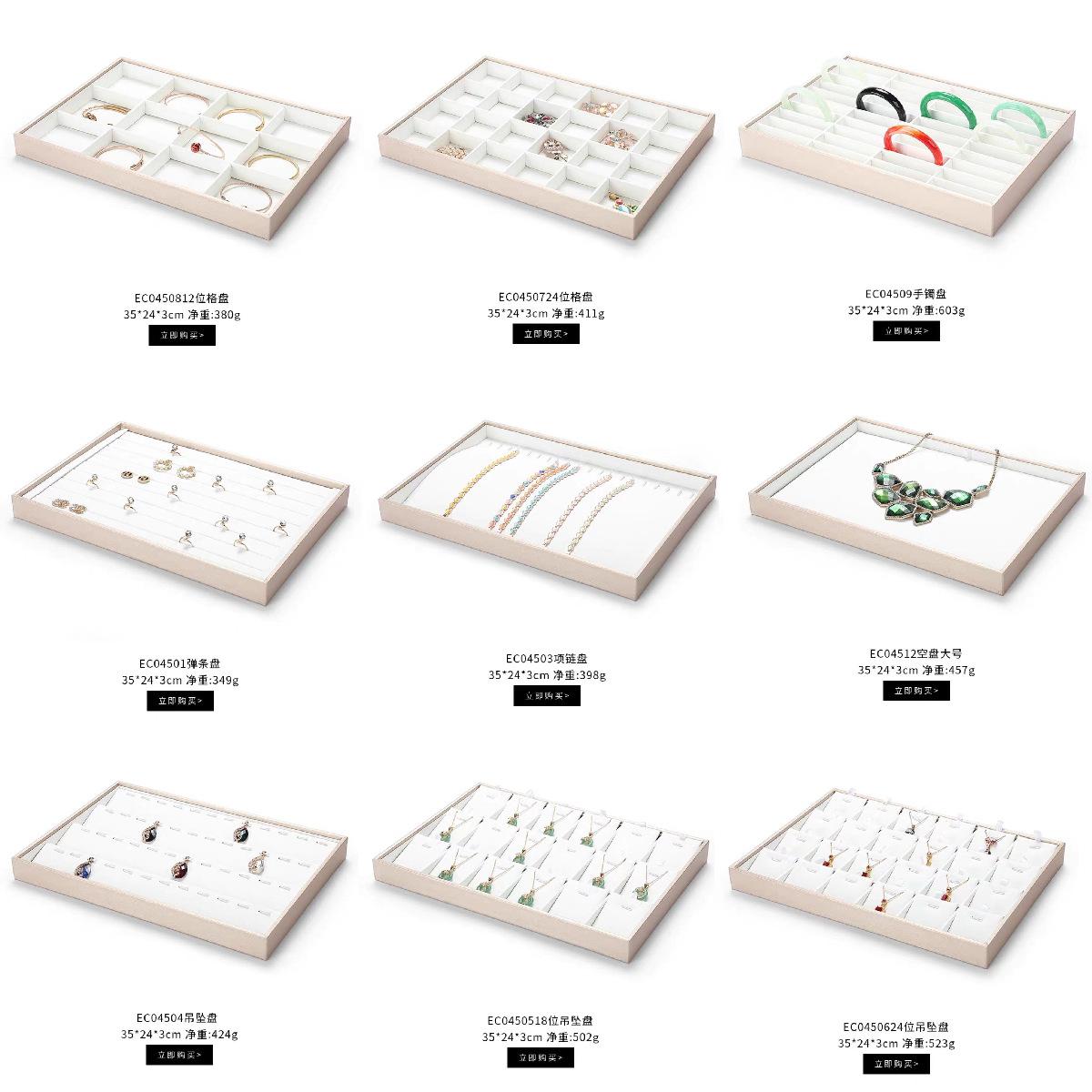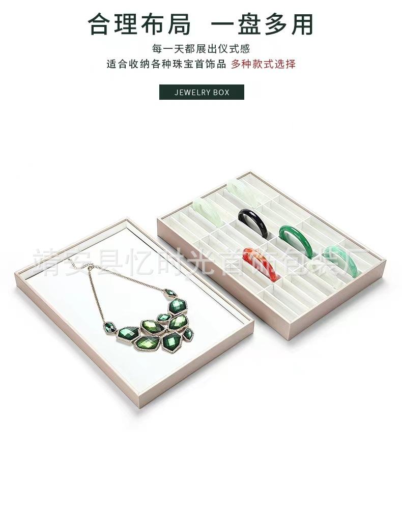 Bandeja de exhibición de joyas de cuero cepillado con acabado dorado, ideal para guardar anillos, collares y pulseras.