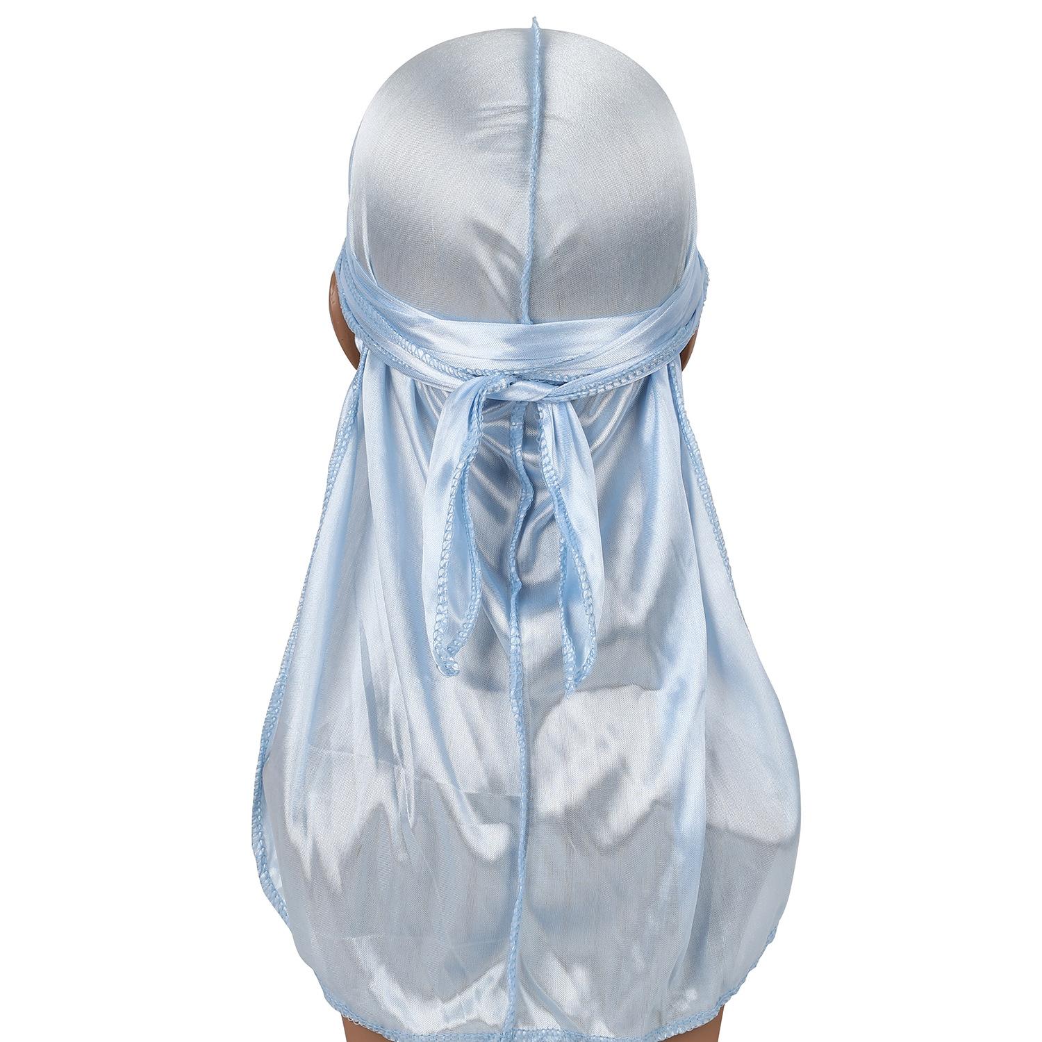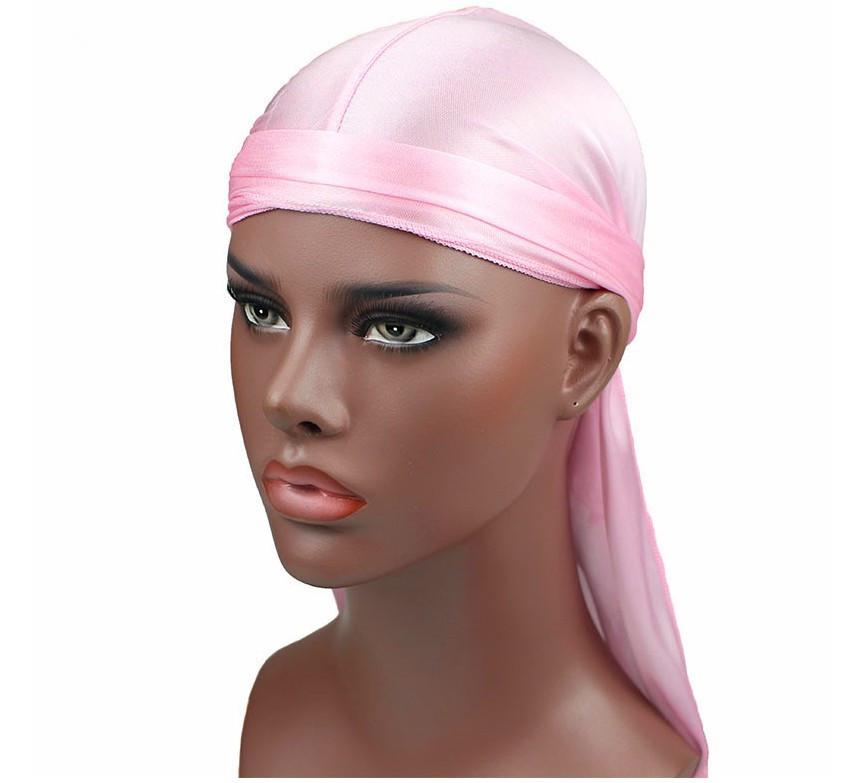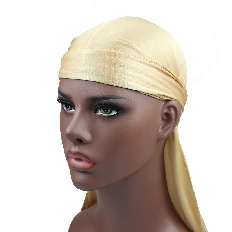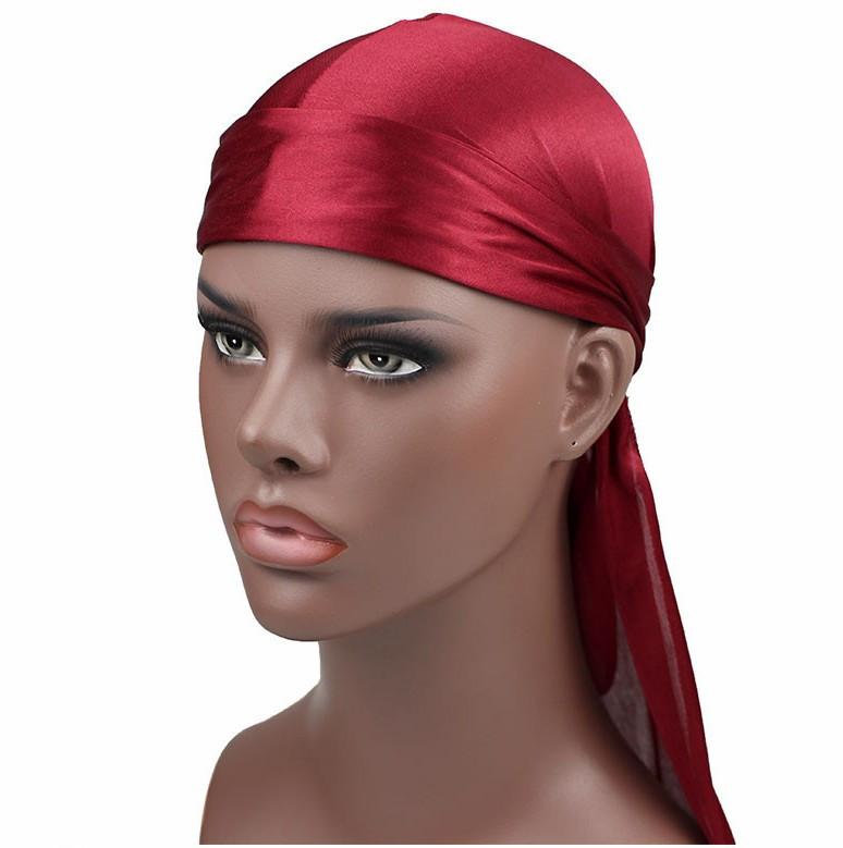 Sombrero Pirata de Satén de Seda Monocromático con Trenza Larga de Cola, Gorro Elástico Baotou, Gorro para Quimioterapia, Durag Sedoso