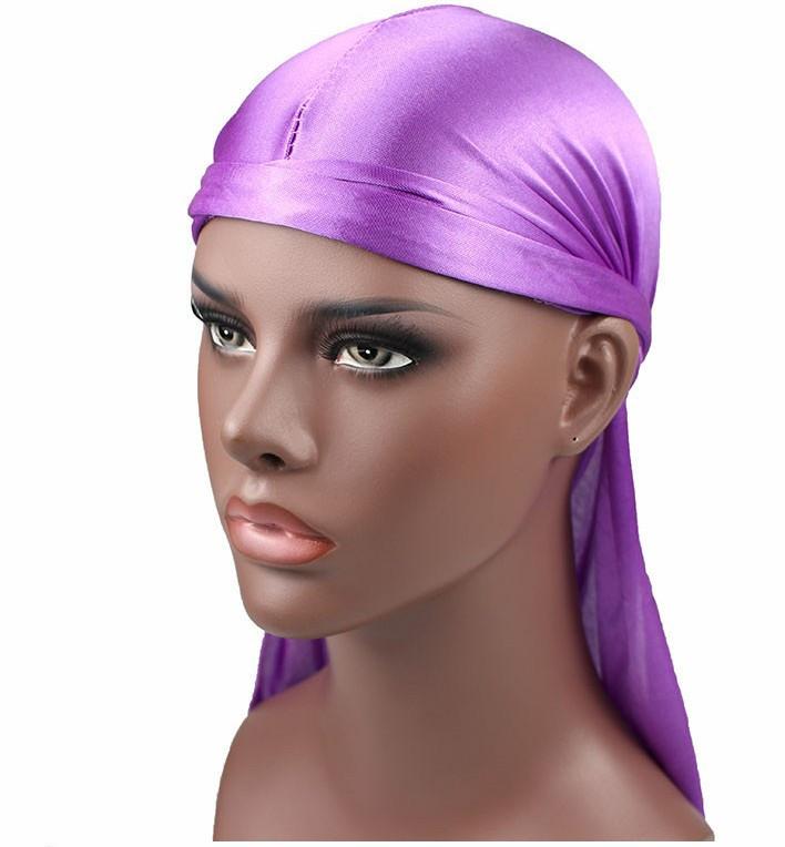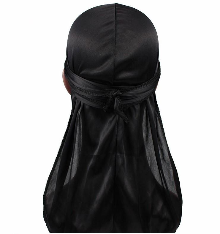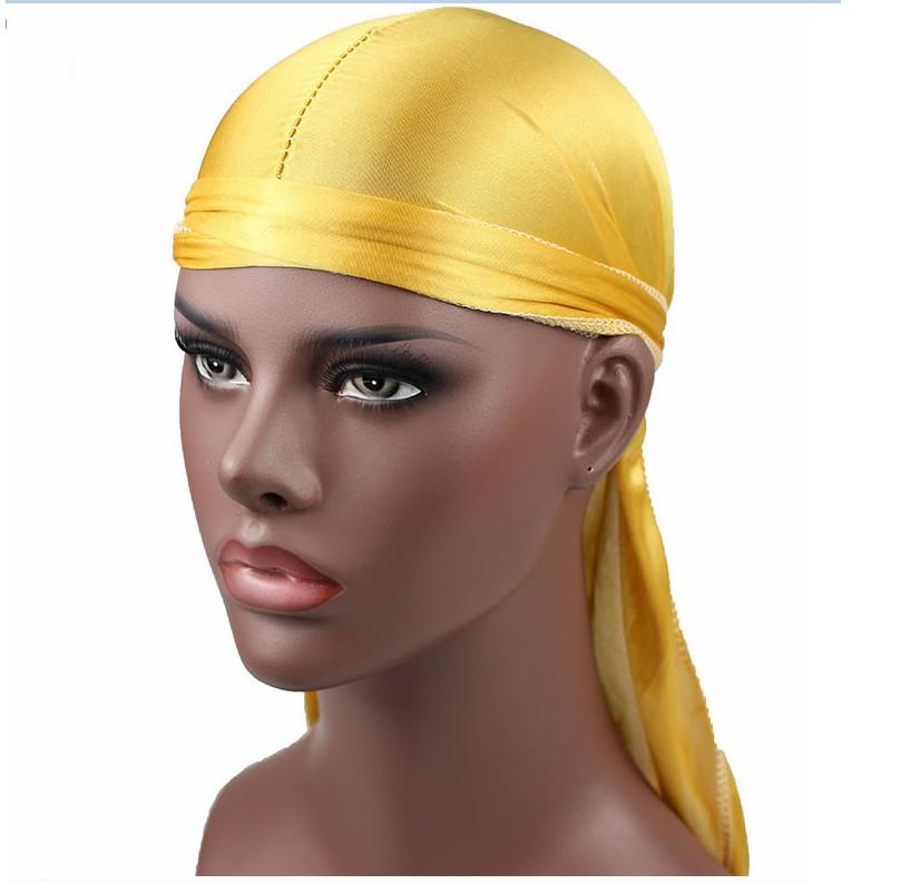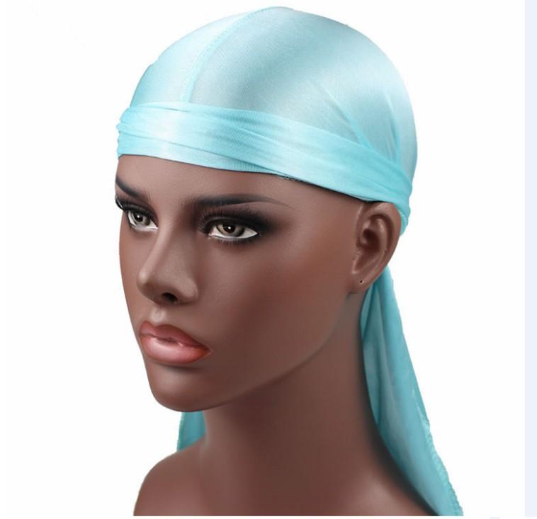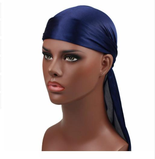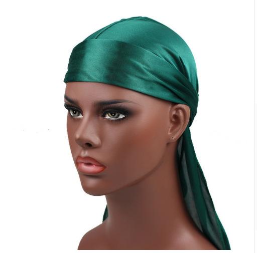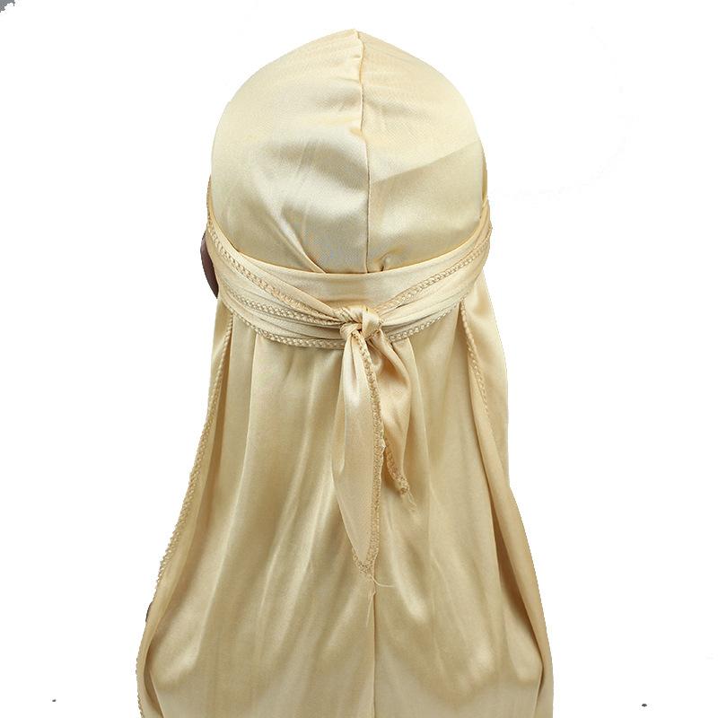 Sombrero Pirata de Satén de Seda Monocromático con Trenza Larga de Cola, Gorro Elástico Baotou, Gorro para Quimioterapia, Durag Sedoso