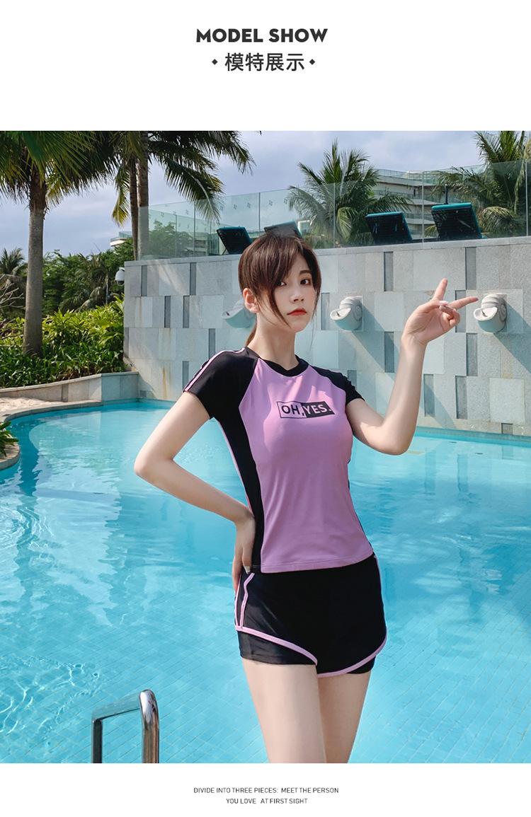 Traje de baño para mujer Verano Nuevo Estilo Dividido Conservador Adelgazante Cubre Vientre Bóxer Natación Deportes Estudiante Talla Grande Traje de baño Aguas Termales