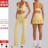 Traje de yoga sin costuras para mujer, nuevo modelo europeo y americano, con espalda hueca, pantalones deportivos ajustados de color melocotón, traje de fitness para yoga.