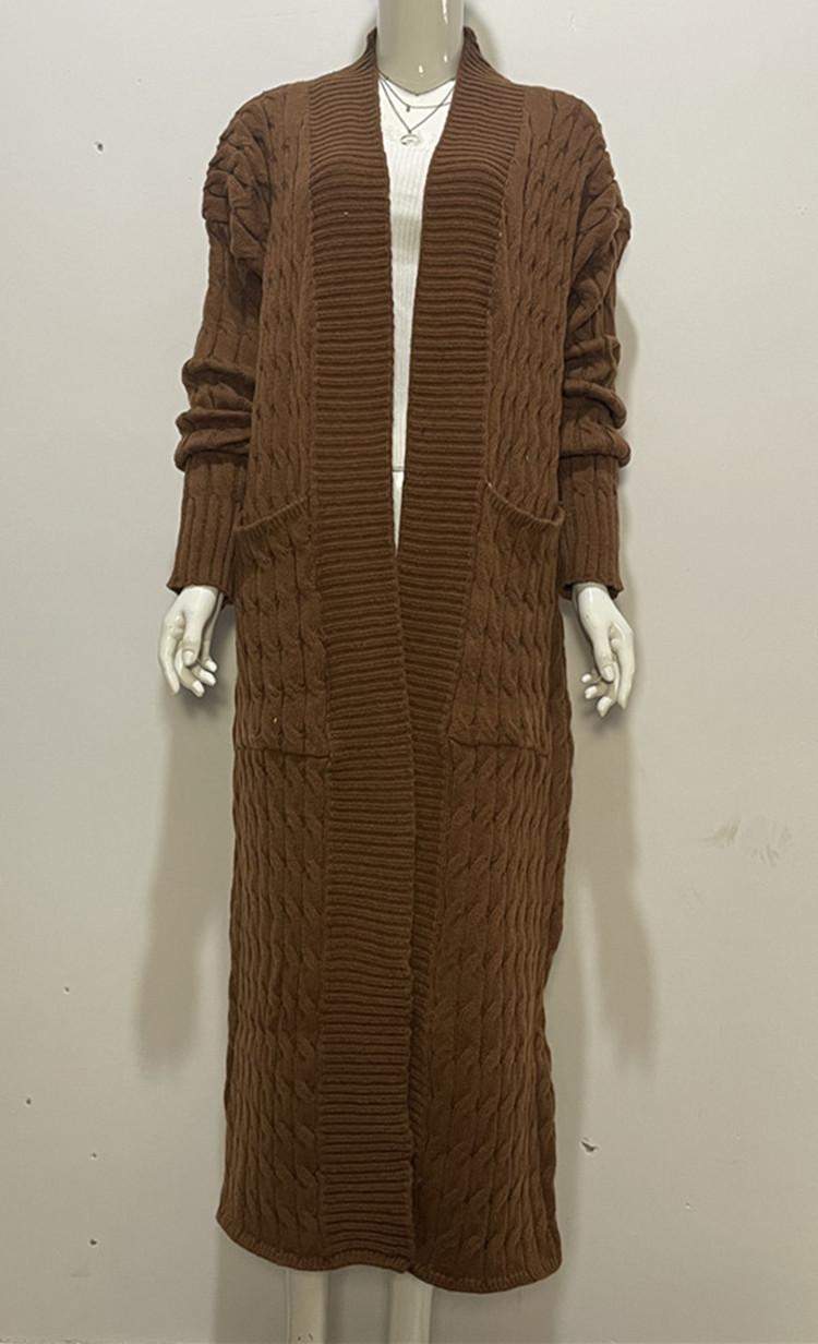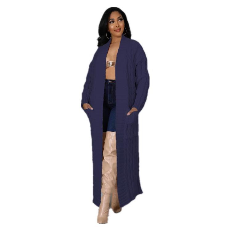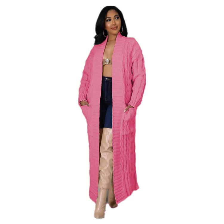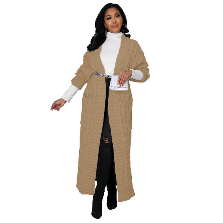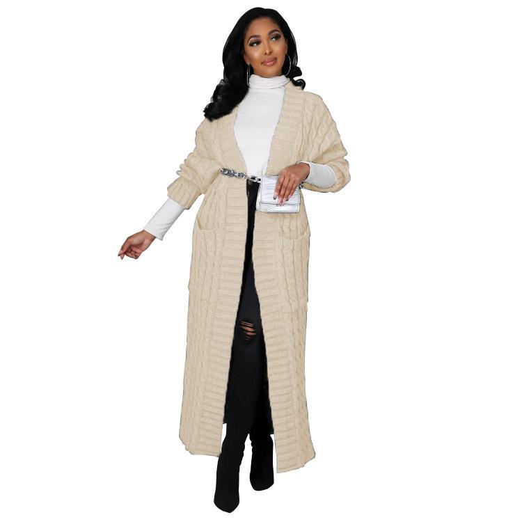 Cárdigan de punto holgado para mujer, estilo informal, con bolsillos, talla grande, largo y retorcido, para otoño e invierno, estilo europeo y americano.