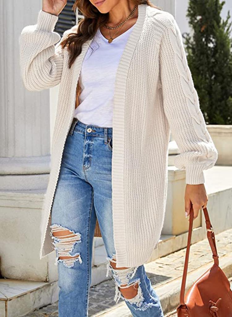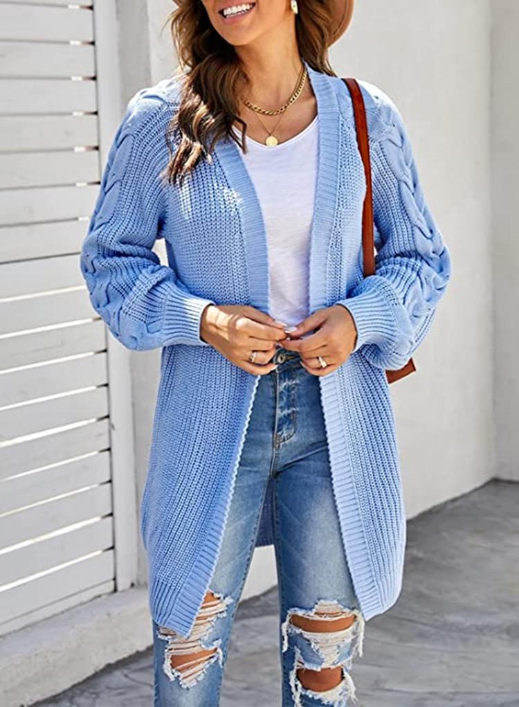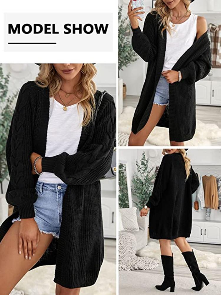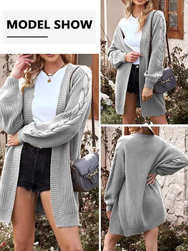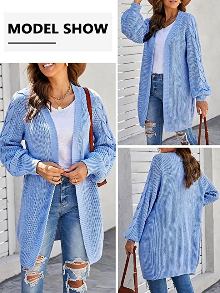 Cárdigan de Punto Grueso para Mujer de Manga Larga con Manga Farol de Otoño e Invierno 2025 para Comercio Exterior de Amazon, Suéter Holgado de Talla Grande