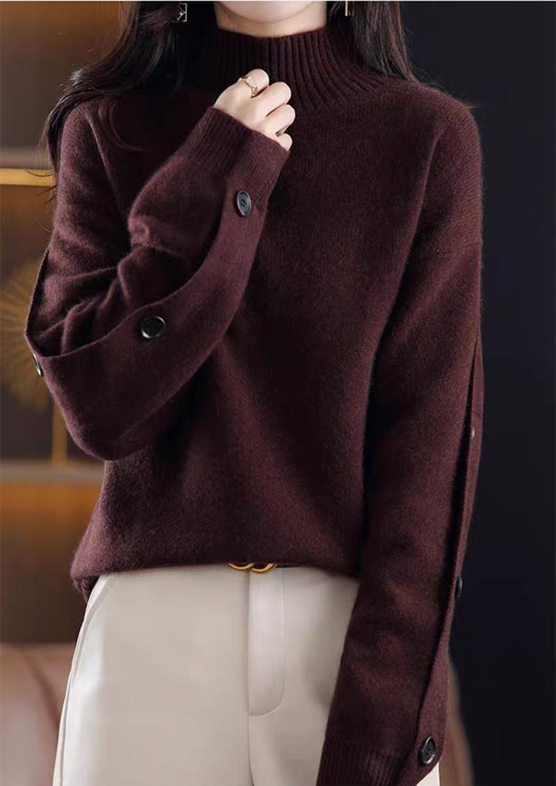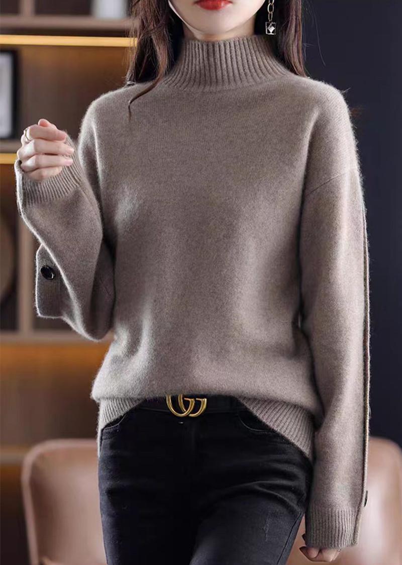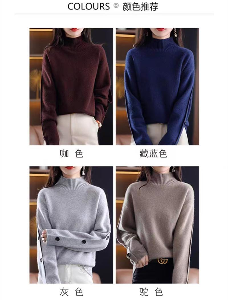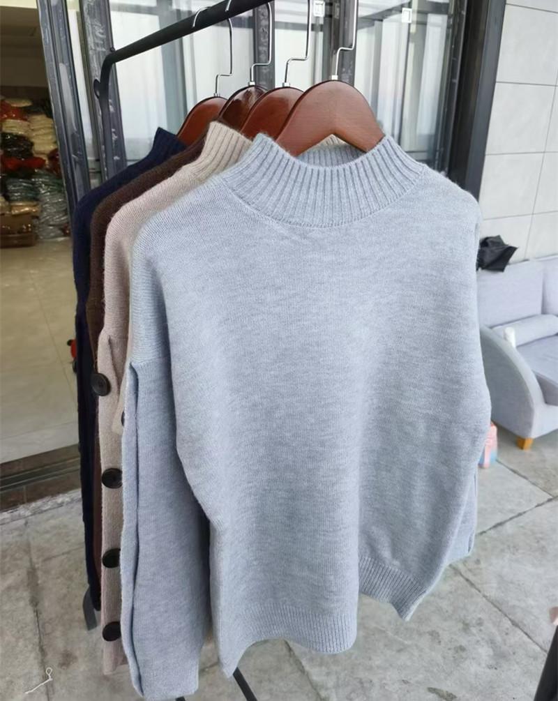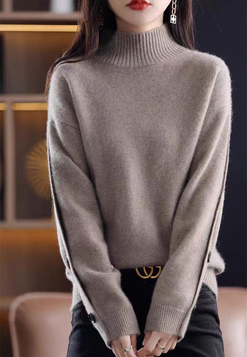 Suéter de cuello alto medio para mujer, diseño de camisa básica, mangas largas, elegante, antiedad, holgado, moderno, para otoño e invierno.