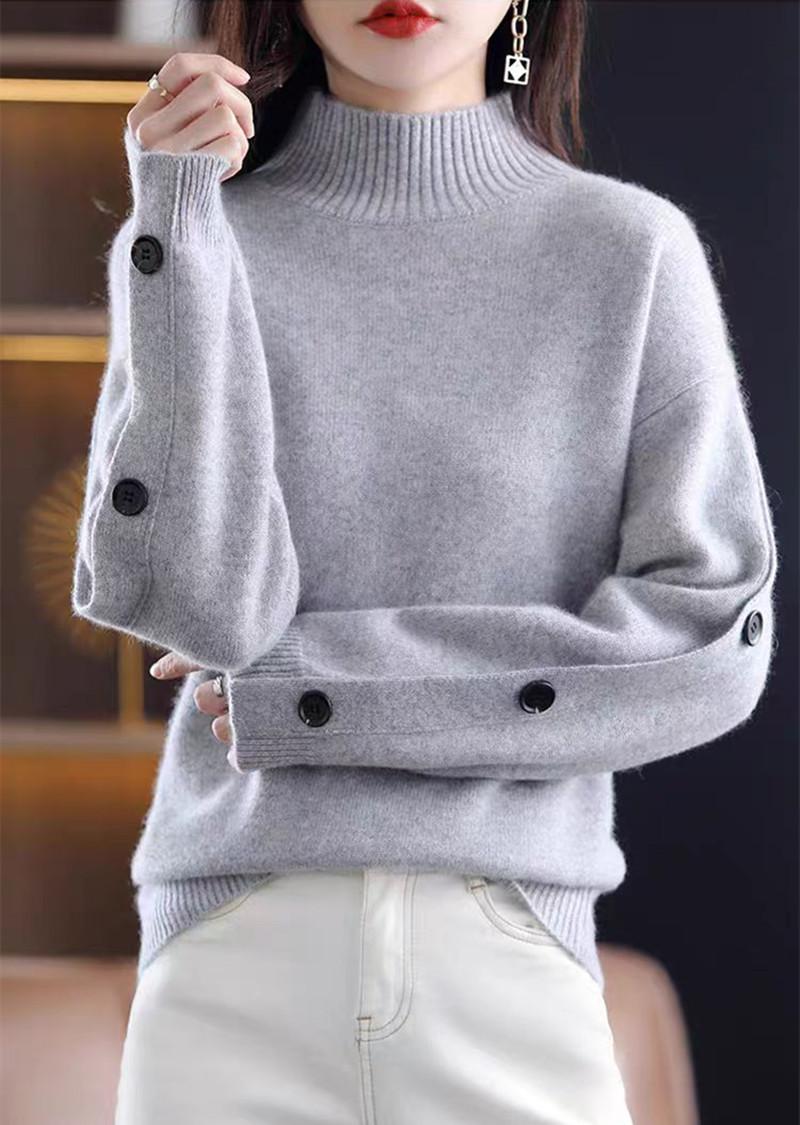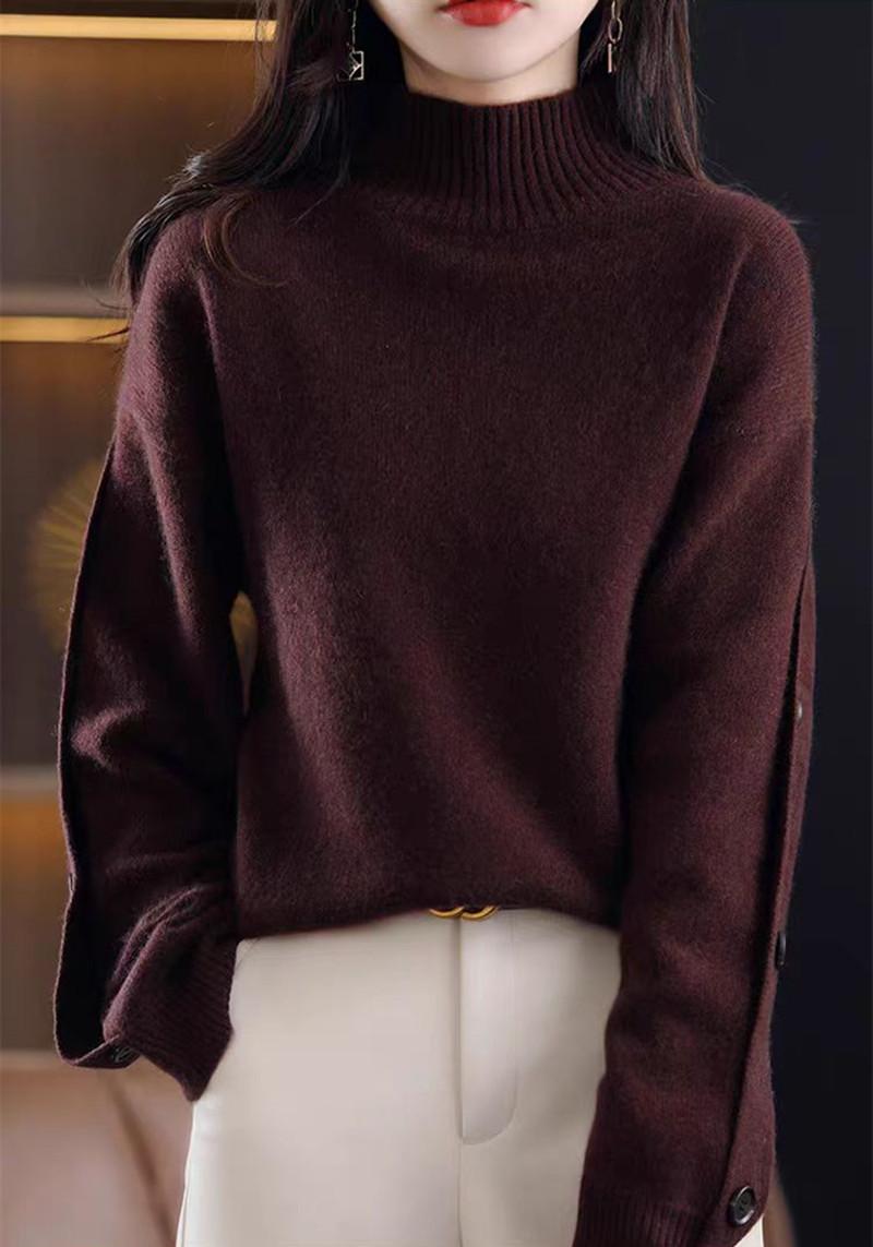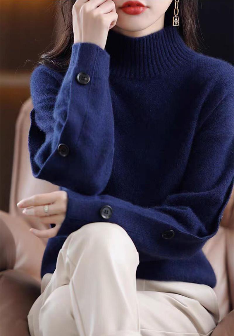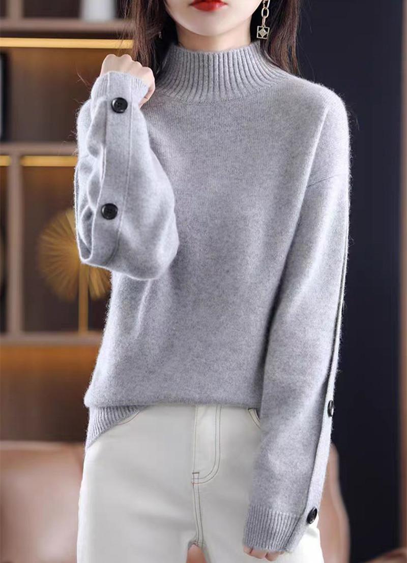 Suéter de cuello alto medio para mujer, diseño de camisa básica, mangas largas, elegante, antiedad, holgado, moderno, para otoño e invierno.