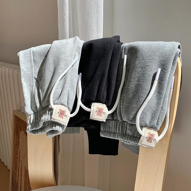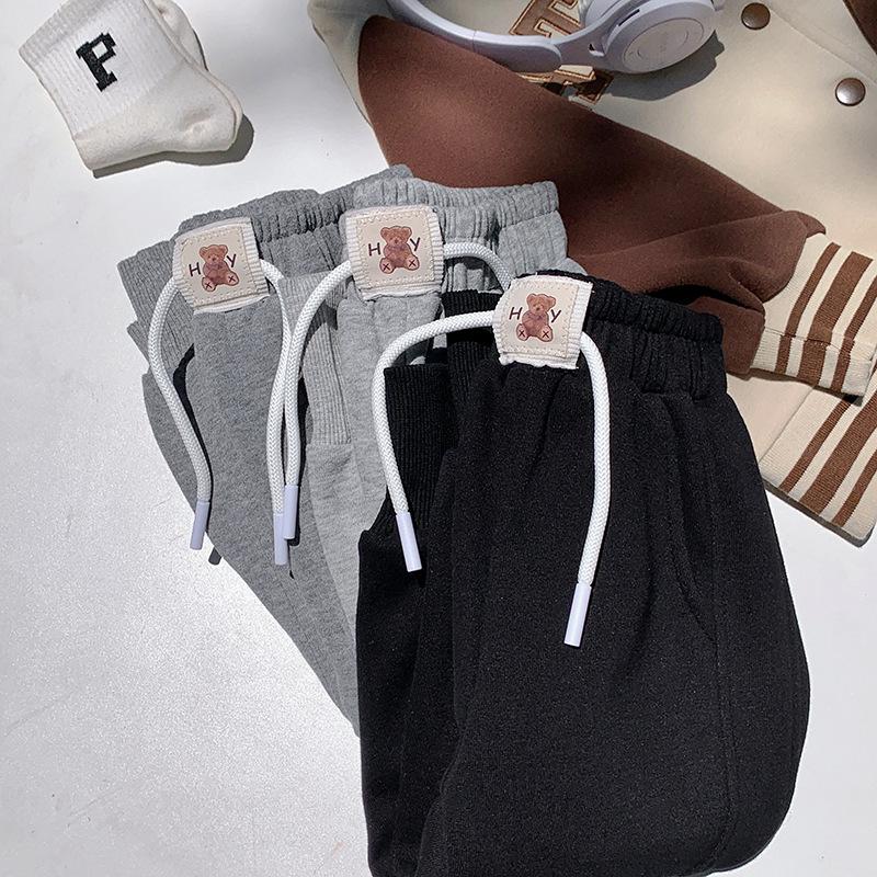 Pantalones deportivos holgados con estampado de oso para hombre y mujer, estilo coreano, para otoño e invierno, para comercio exterior.
