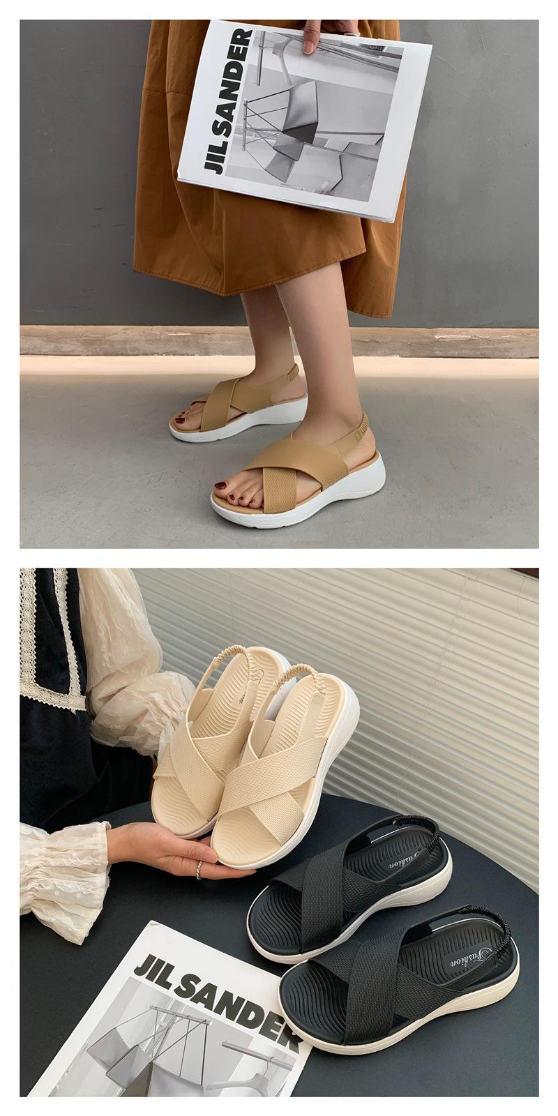 Nuevas Sandalias de Tiras Cruzadas Bicolor de Heli Shark para Verano Ropa Exterior de Mujer Casual Zapatos de Mujer Sandalias de Playa de Moda de Suela Gruesa