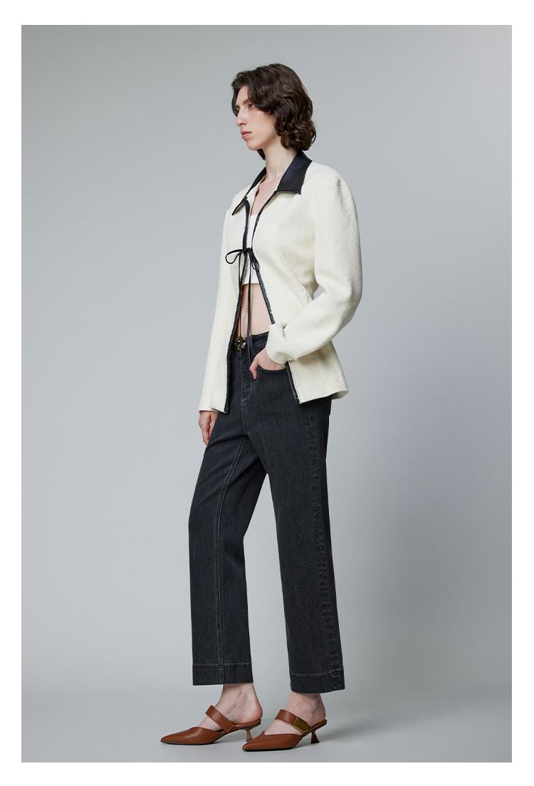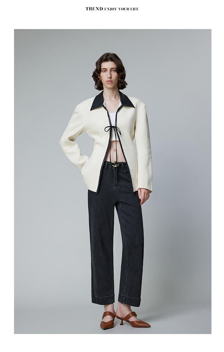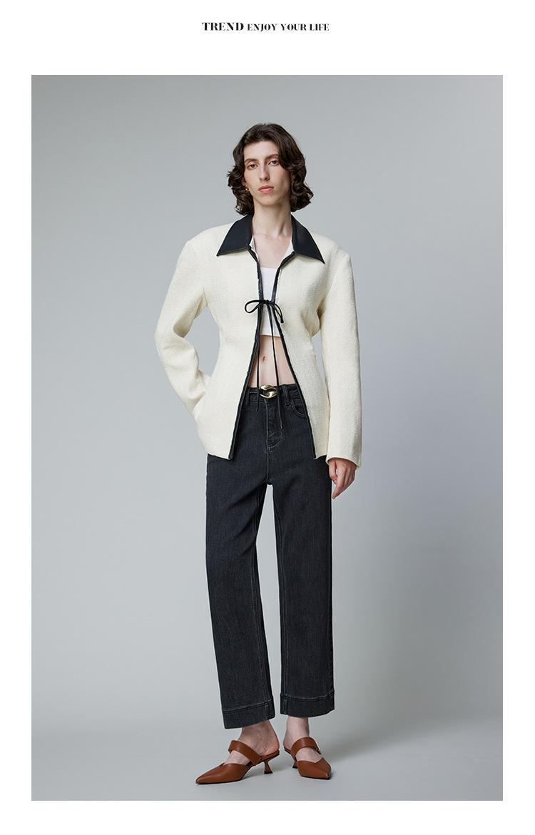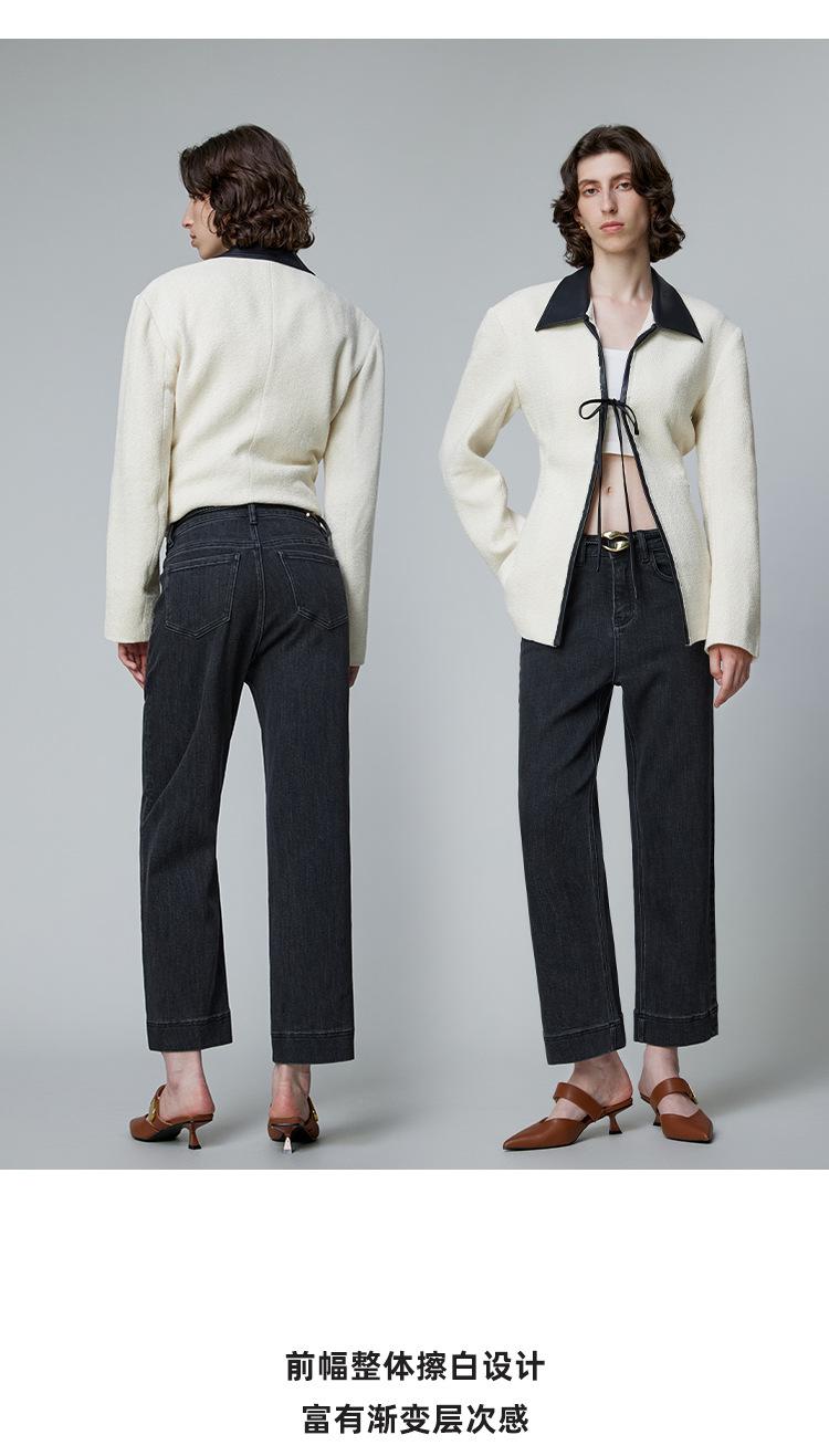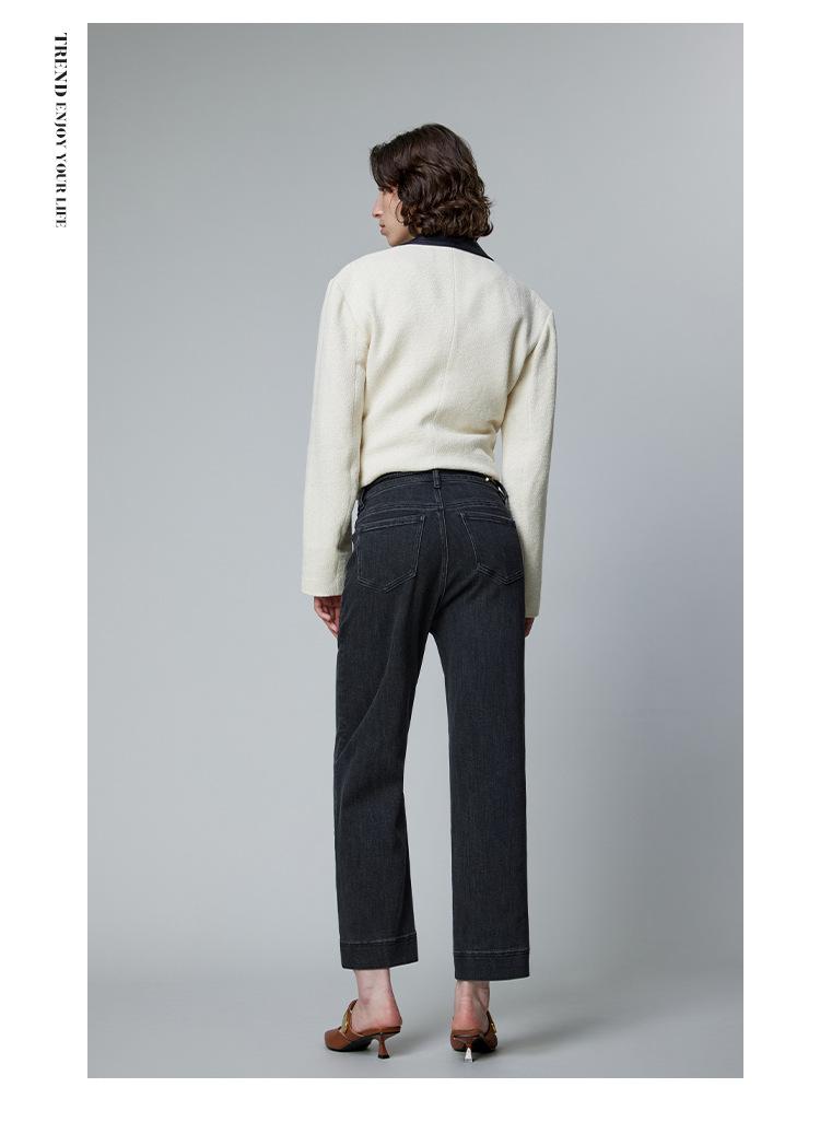Otoño 2024 Jeans Slim de Cintura Alta para Mujer Microelásticos Cómodos y Sofisticados Pantalones Rectos Cortos Negros