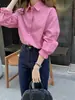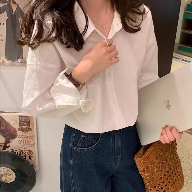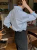 Camisa informal holgada de manga larga azul estilo coreano, sencilla, con interior pequeño, diseño de principios de otoño, camisa apilada