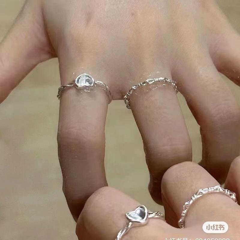 Anillo minimalista ins plateado para mujer diseño nicho corazón dulce trenzado retorcido anillo de amor anillo simple