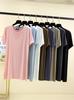 Pulôver de gola redonda modal, camiseta de comprimento médio feminina, fina, casual, solta, manga curta, top dividido