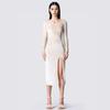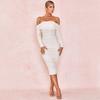 Vestido de poliéster plisado de manga larga con hombros descubiertos para fiesta, sexy, ajustado, de color sólido, para mujer europea y americana 2020
