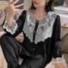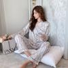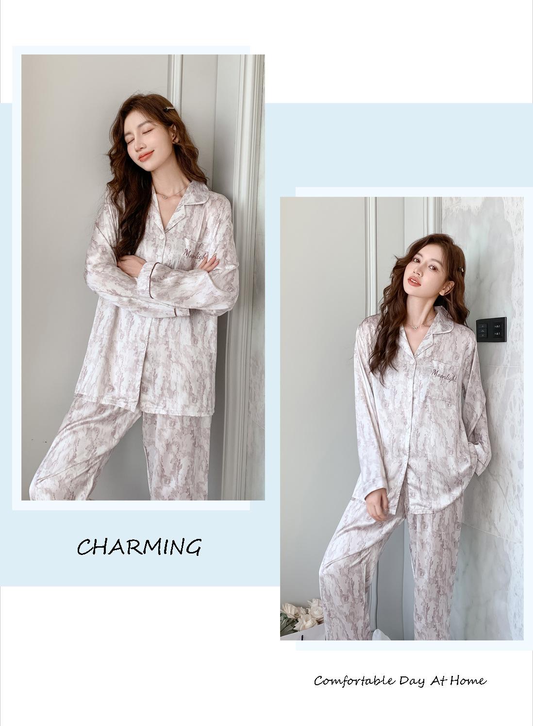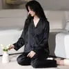 Pijamas de mujer de primavera y otoño de manga larga de seda de alta gama, estilo coreano, ligeros, de lujo, de seda fina, ropa para el hogar.