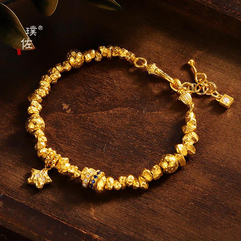 Tienda de oro con accesorios de bricolaje de oro, patrón de martillo de diamante, pulsera de estrella de cinco puntas, collar, diseño de cadena de clavícula para mujer