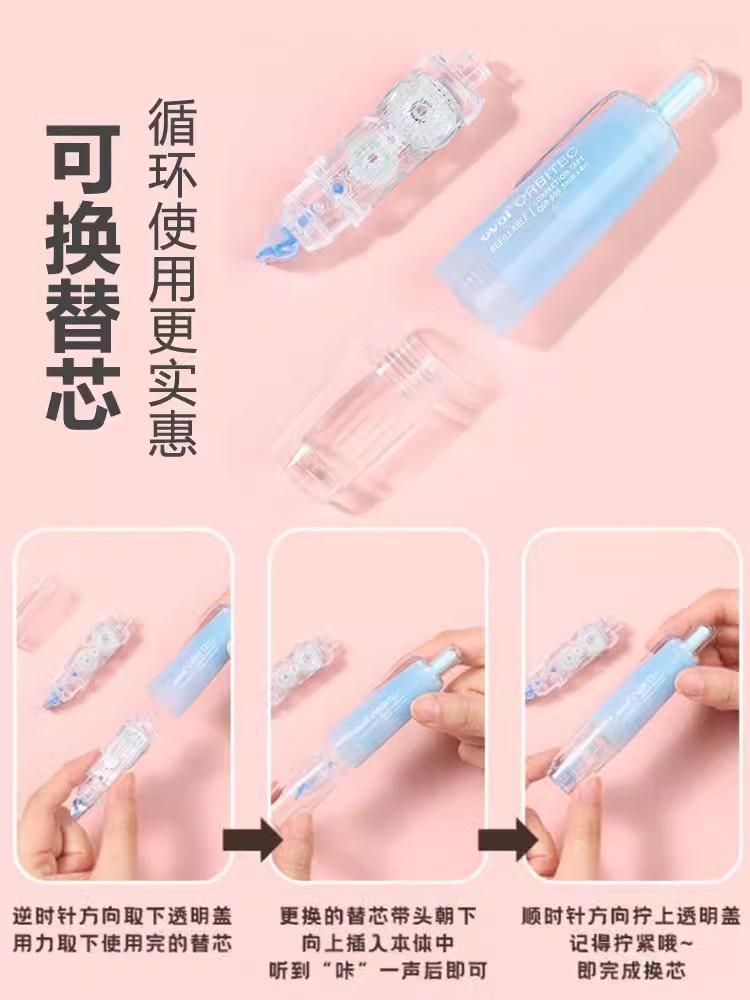 Taiwán OVAL Cinta Correctora Límite de Niebla Pluma Cinta Correctora Transparente para Estudiantes con Núcleo Reemplazable Cinta Correctora