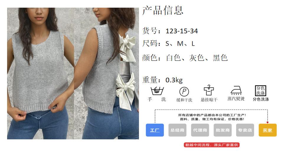 Chaleco nuevo de otoño e invierno transfronterizo, chaleco con botones y lazo de Amazon, cárdigan, suéter de comercio exterior, chaqueta, abrigo para mujer