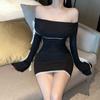 Vestido camisero sexy con hombros descubiertos, estilo halter cruzado, cintura ajustada, para mujer, estilo maduro, falda corta ligera, a la moda.