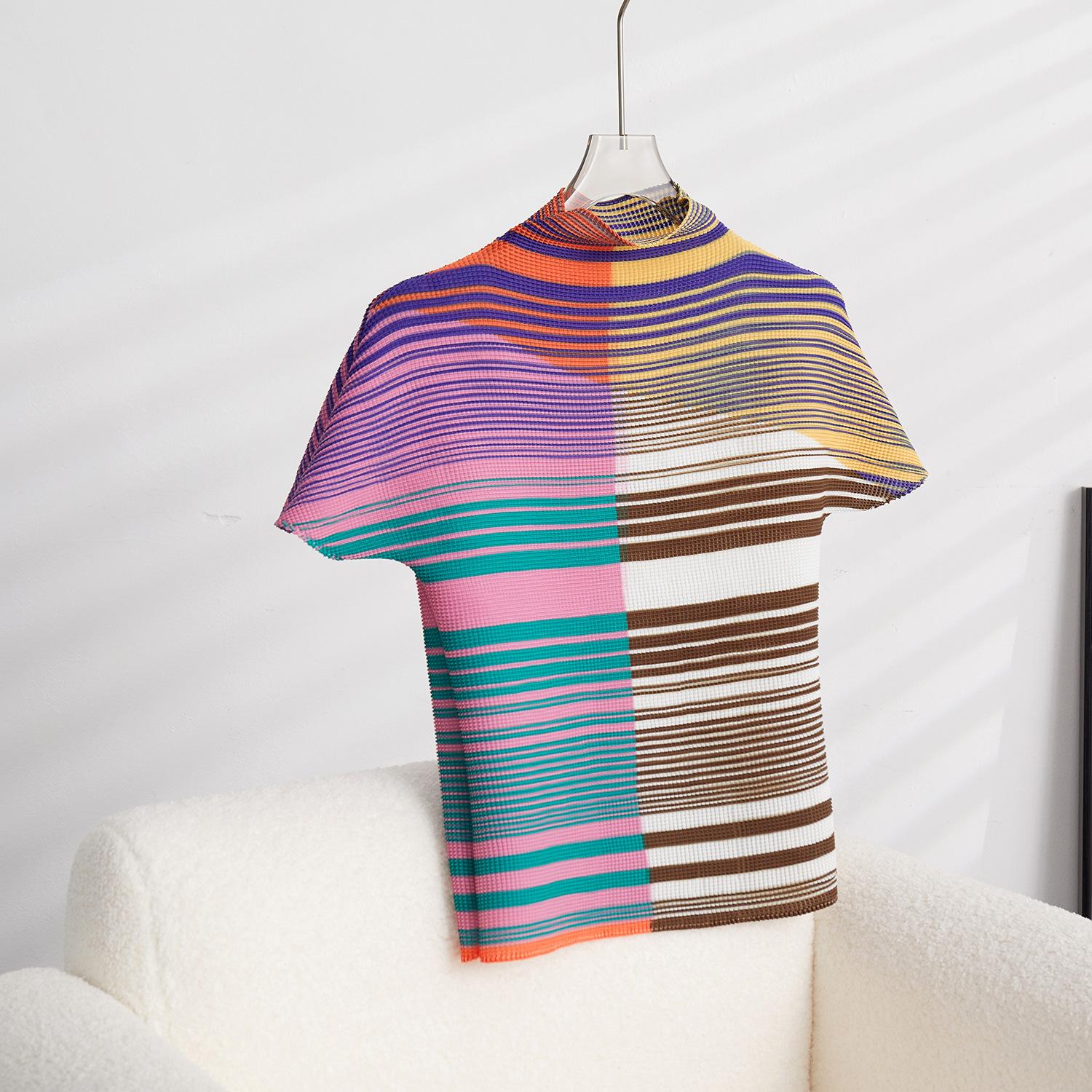 Blusas plisadas para mujer, mangas largas, serie yo, nuevos productos, camisetas finas de temperamento morado, camisetas de fondo, venta directa de fábrica Miyake |