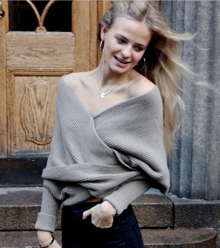 Suéter tipo chal con cuello en V y hombros descubiertos para mujer, nuevo cárdigan de punto de otoño e invierno, disponible en AliExpress y eBay.