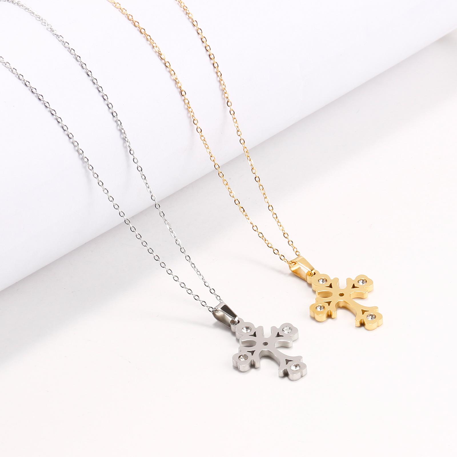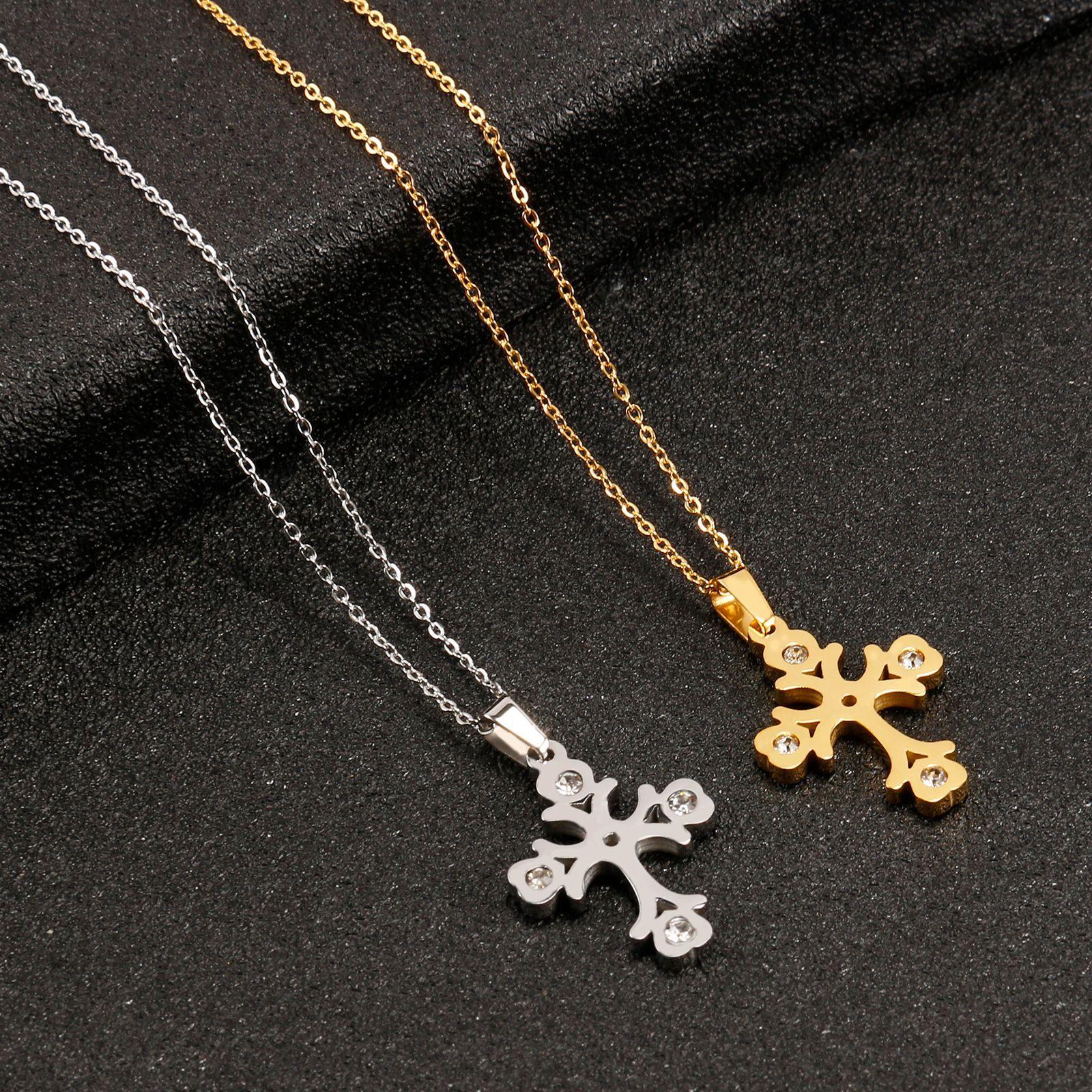Collar con colgante de copo de nieve de cruz de diamante, cadena de clavícula de nicho, collar retro, accesorios de ropa de acero de titanio de alta gama