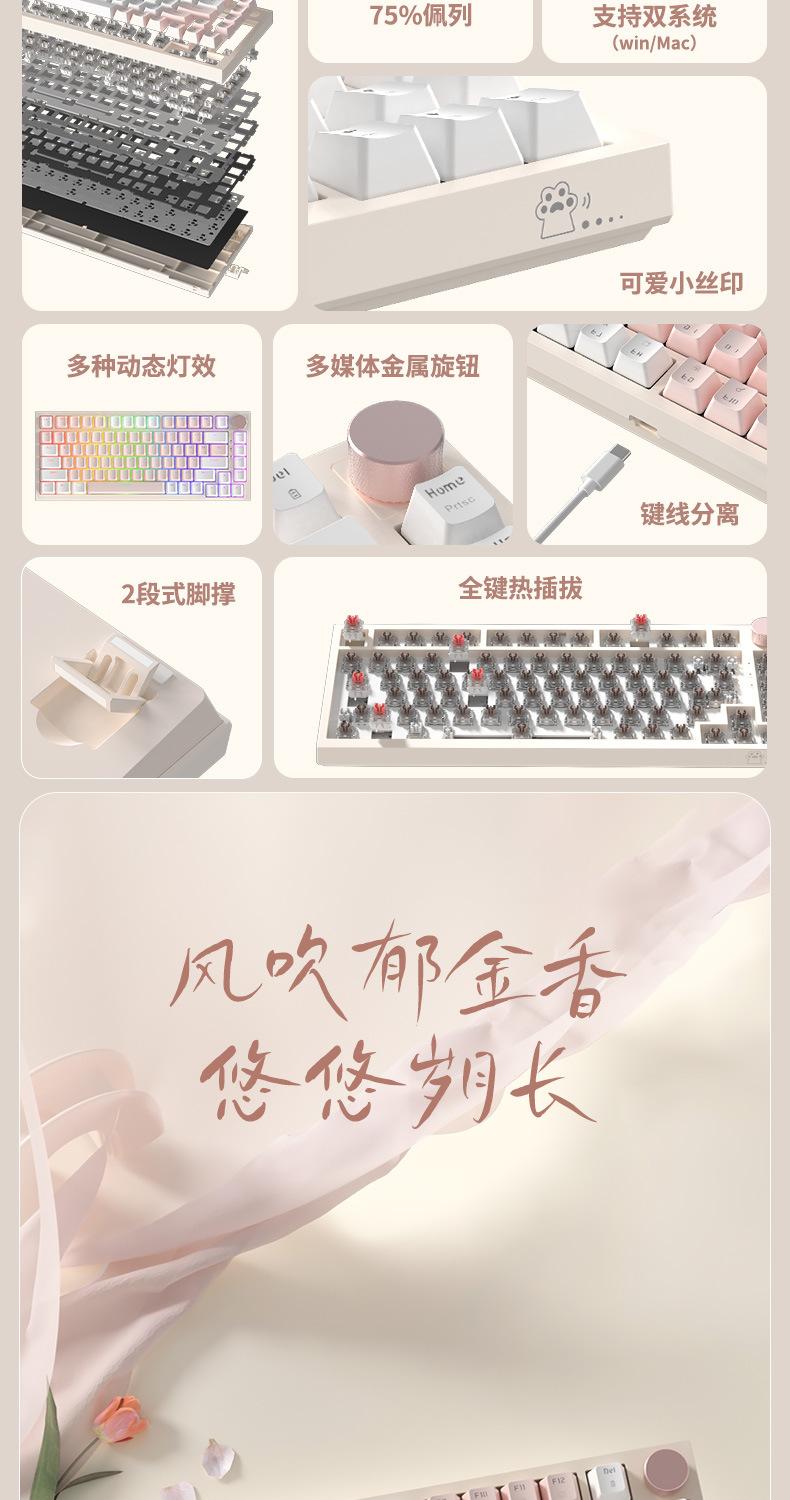 Teclado mecánico Tulip para estudiantes dobles AK82 móvil inalámbrico Bluetooth con cable niña juego de computadora e-sports oficina