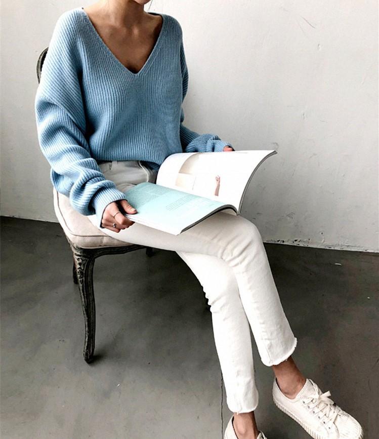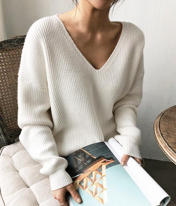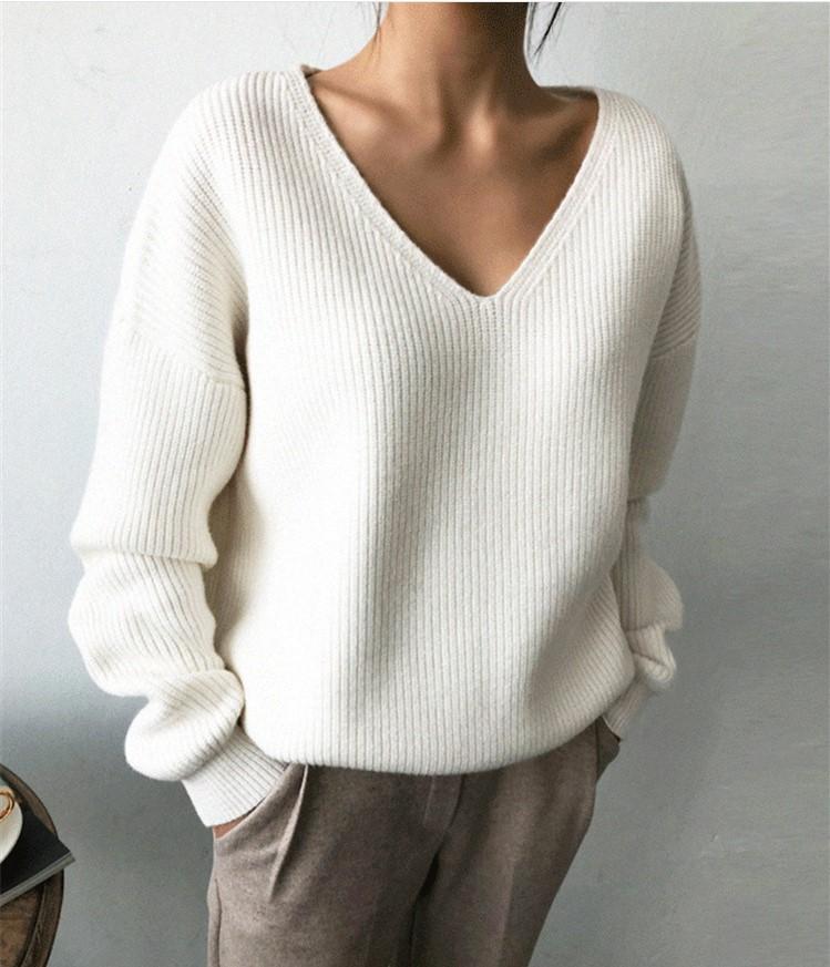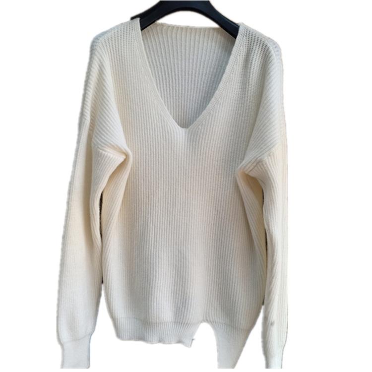 Suéter de otoño e invierno 2020 para mujer, nuevo jersey de comercio exterior, oferta especial de Amazon, cuello en V, hombros descubiertos, color liso, trenzado