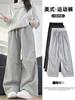 Pantalones de chándal para mujer estilo americano, Nuevo modelo Primavera y Otoño 2026, Pantalones de chándal grises holgados de pierna recta, Pantalones cargo casuales anchos para petite