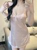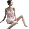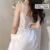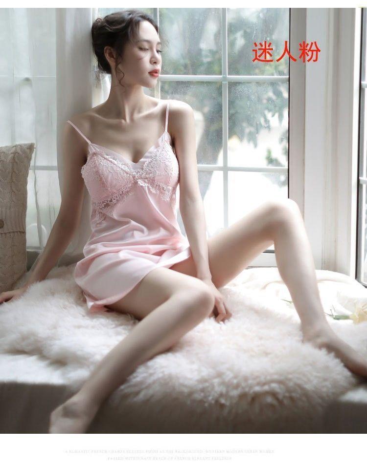 Camisón de encaje con tirantes estilo Pure Desire para mujer, de seda de hielo, nuevo, color nude, encantador, cómodo y con almohadilla para el pecho para el verano.