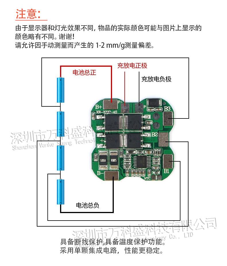 Placa de protección para batería de litio 18650 de 4 celdas 14.8v 14.8v protección contra sobrecarga y sobredescarga protección contra cortocircuito limitación de corriente 40A