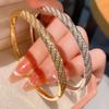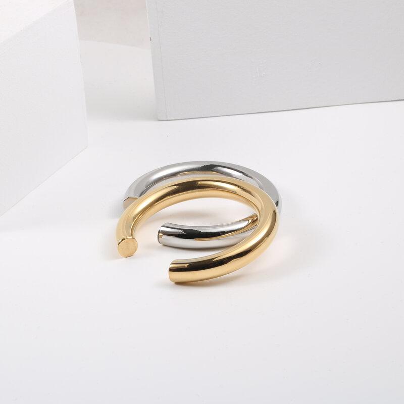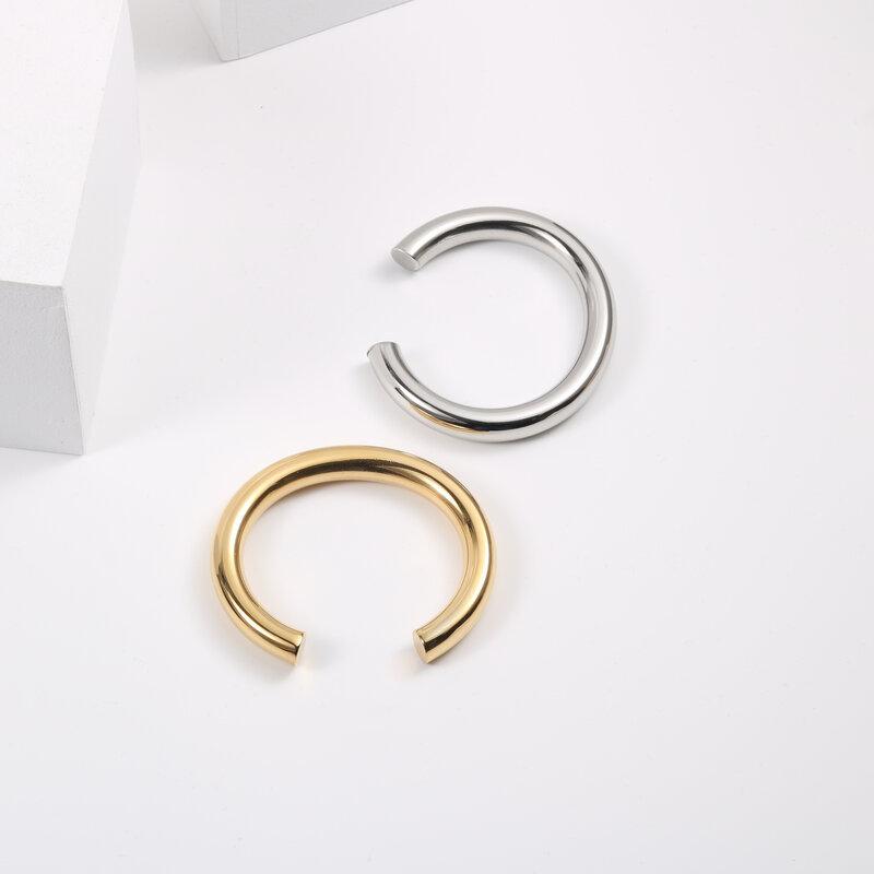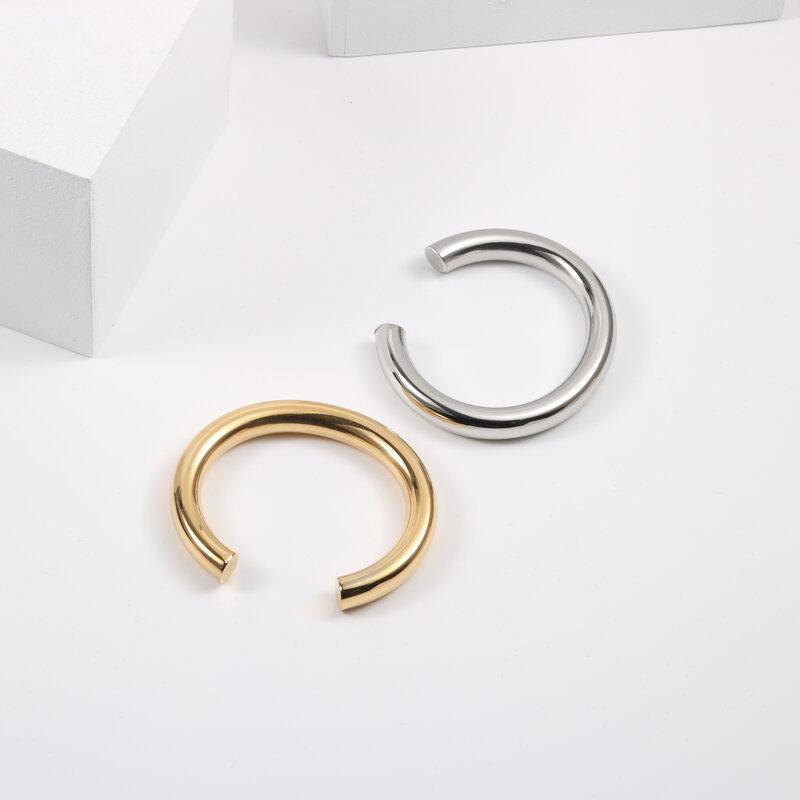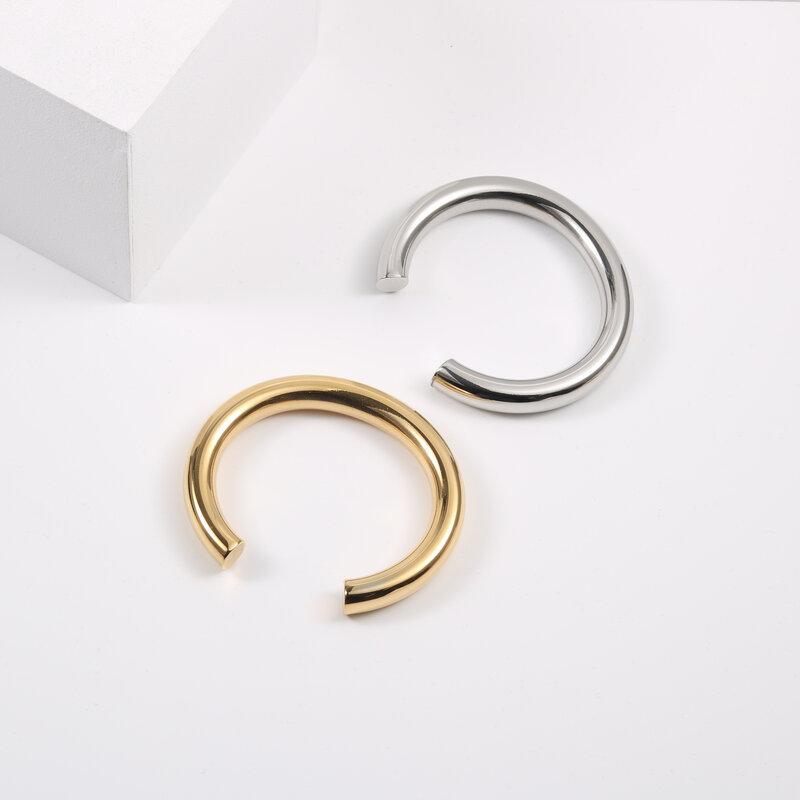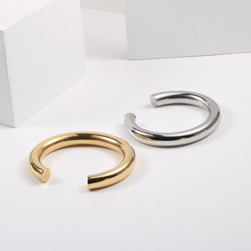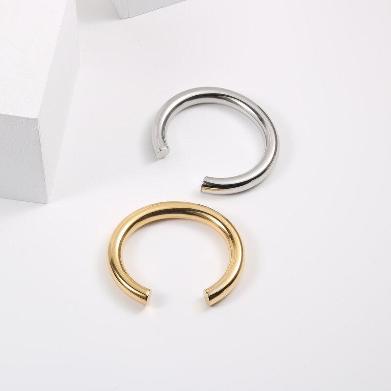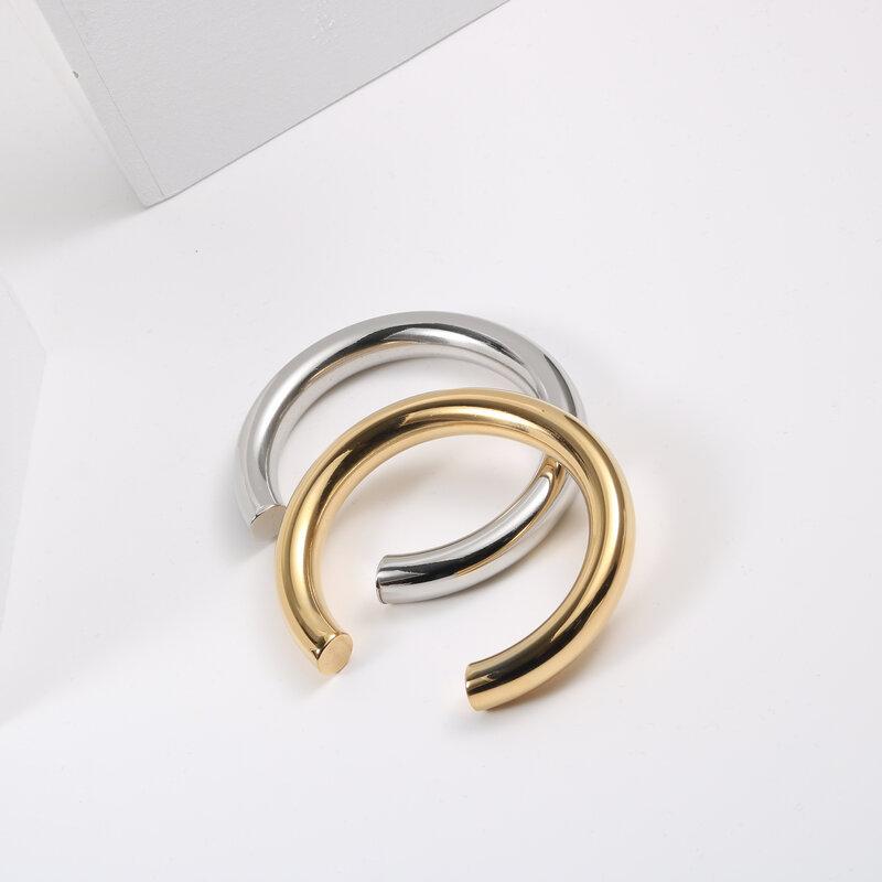 Pulsera gruesa hueca de acero de titanio chapada en oro