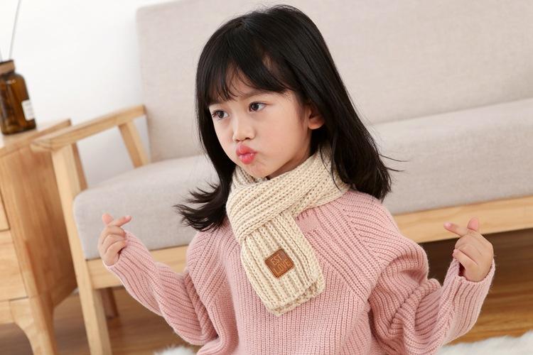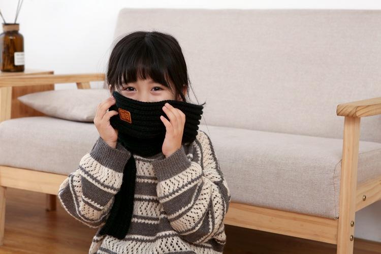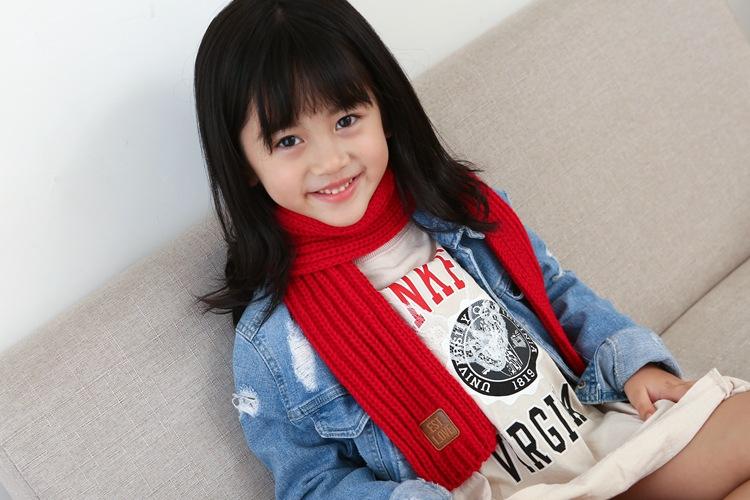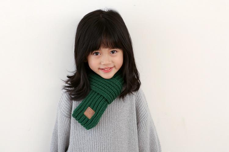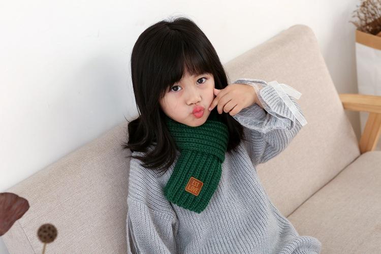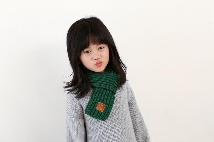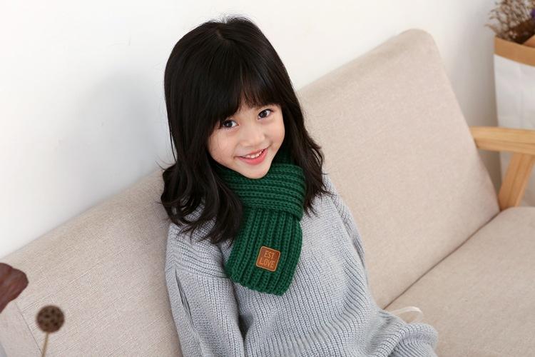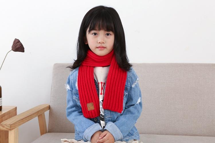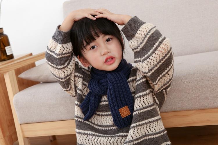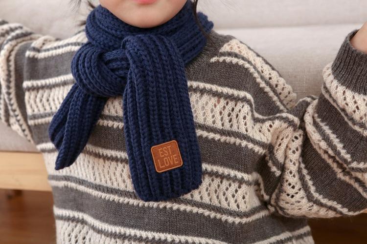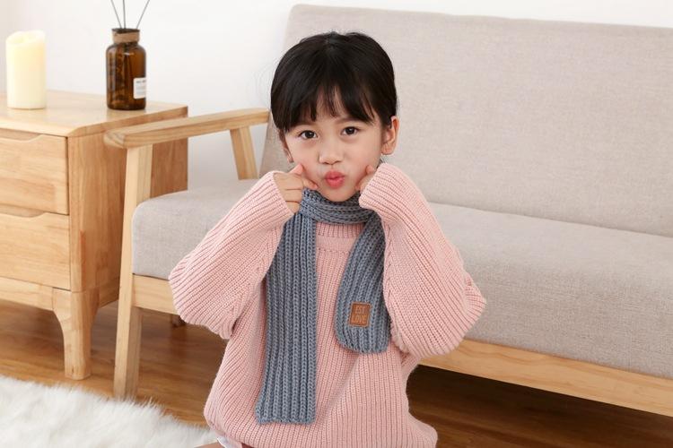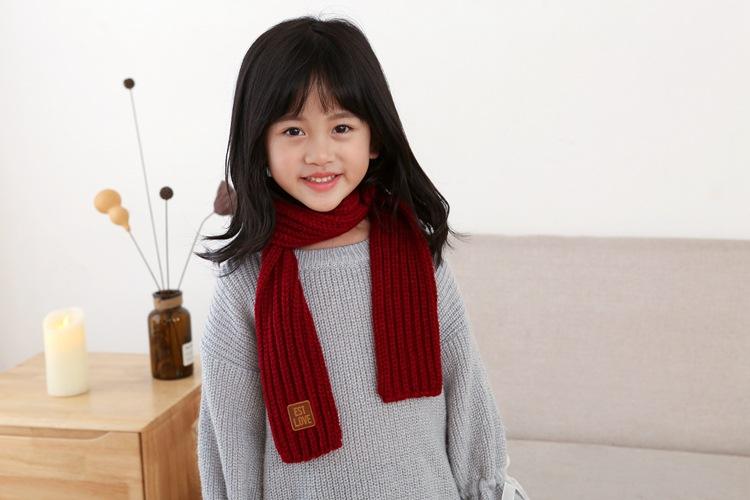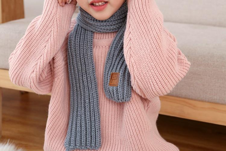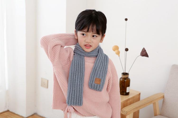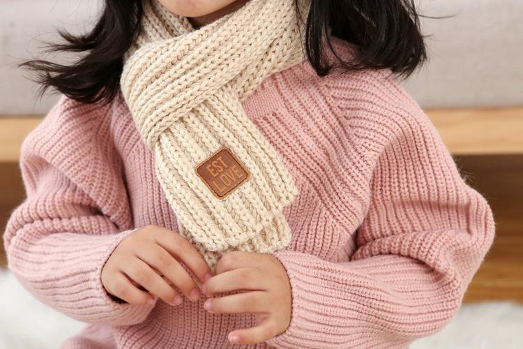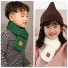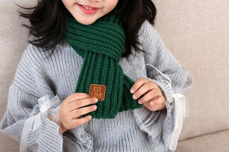 Bufanda cálida de punto para niños de estilo coreano, etiqueta de cuero de invierno, bufanda de lana para bebés, bufanda de invierno para padres e hijos.