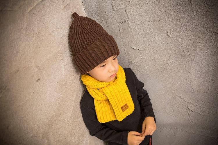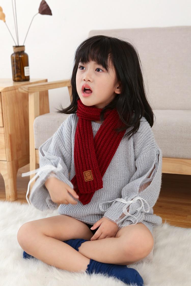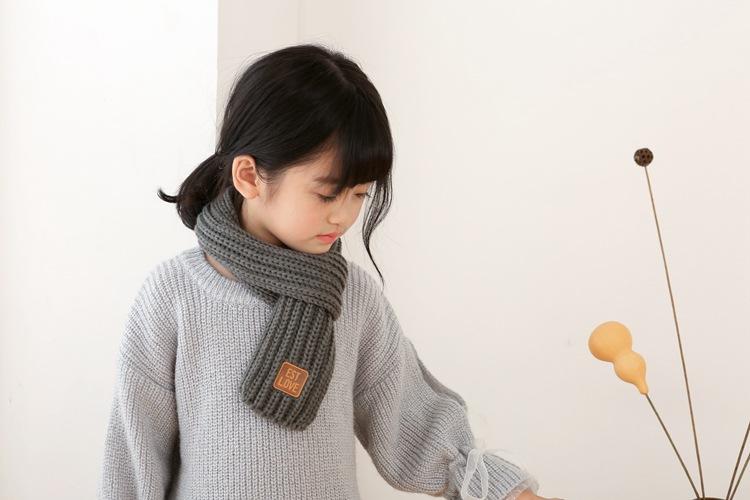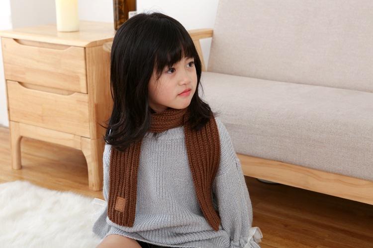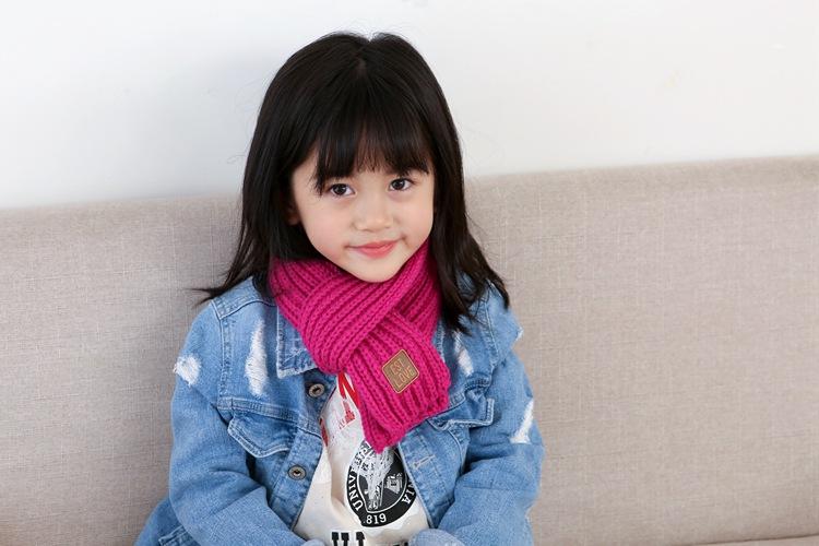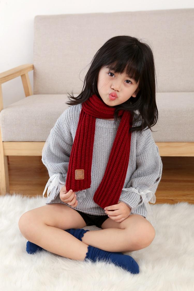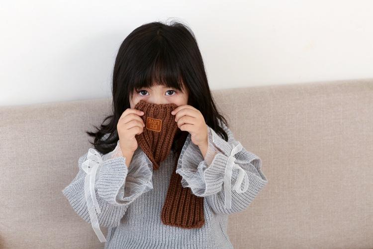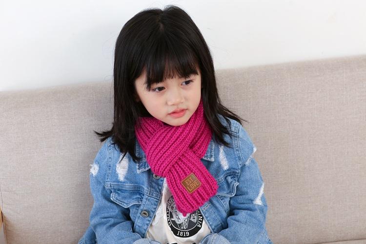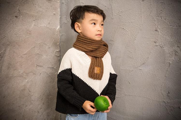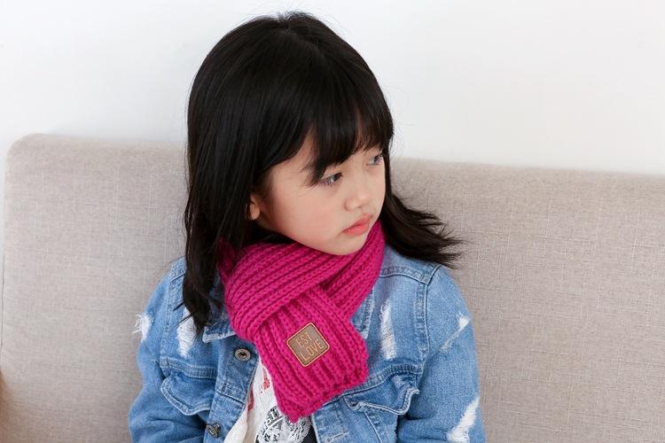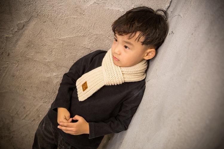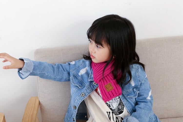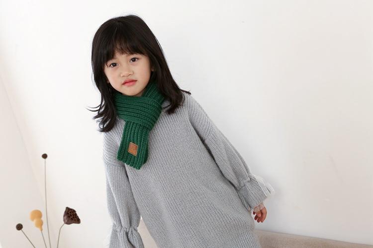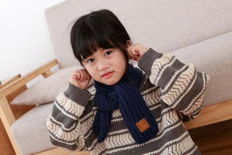 Bufanda cálida de punto para niños de estilo coreano, etiqueta de cuero de invierno, bufanda de lana para bebés, bufanda de invierno para padres e hijos.